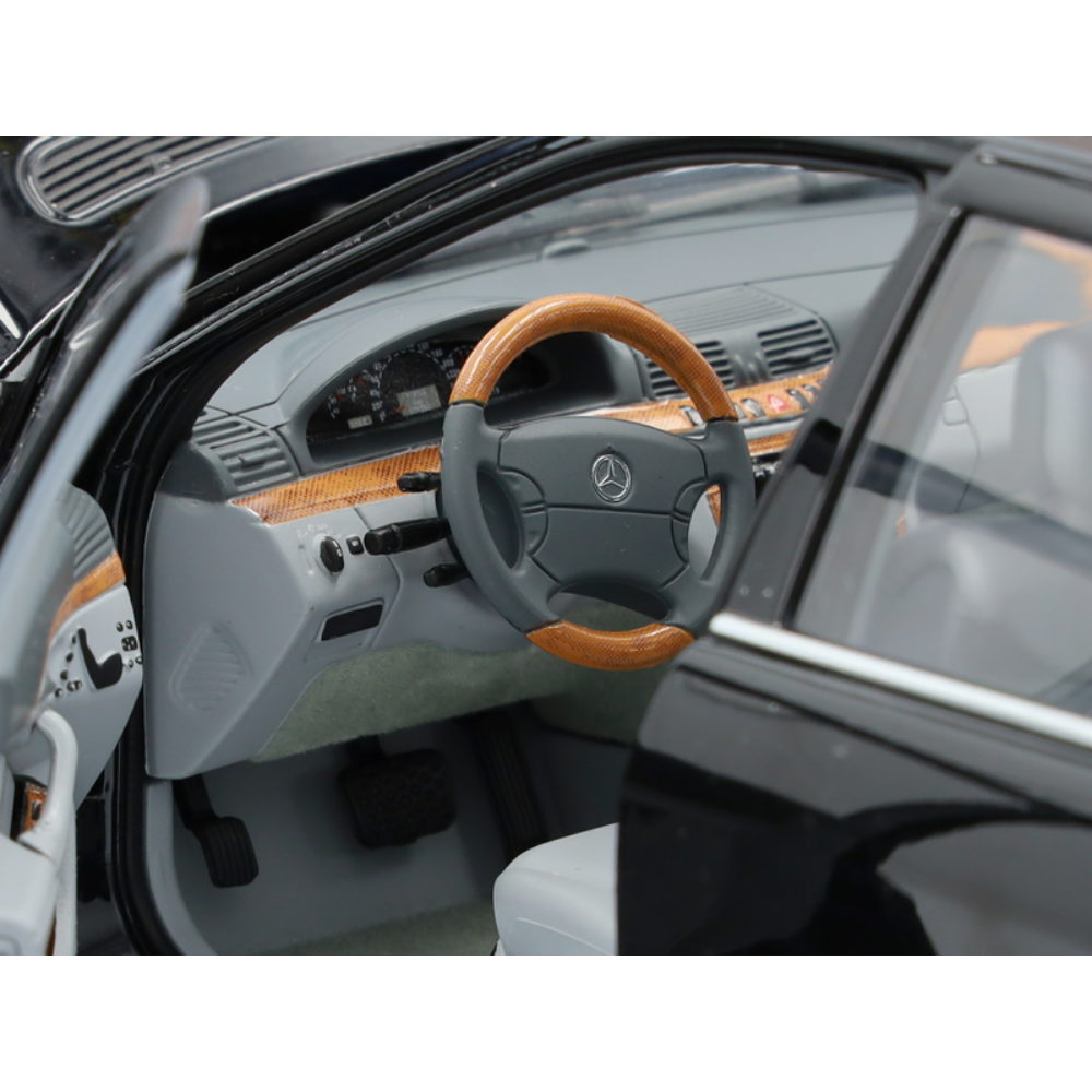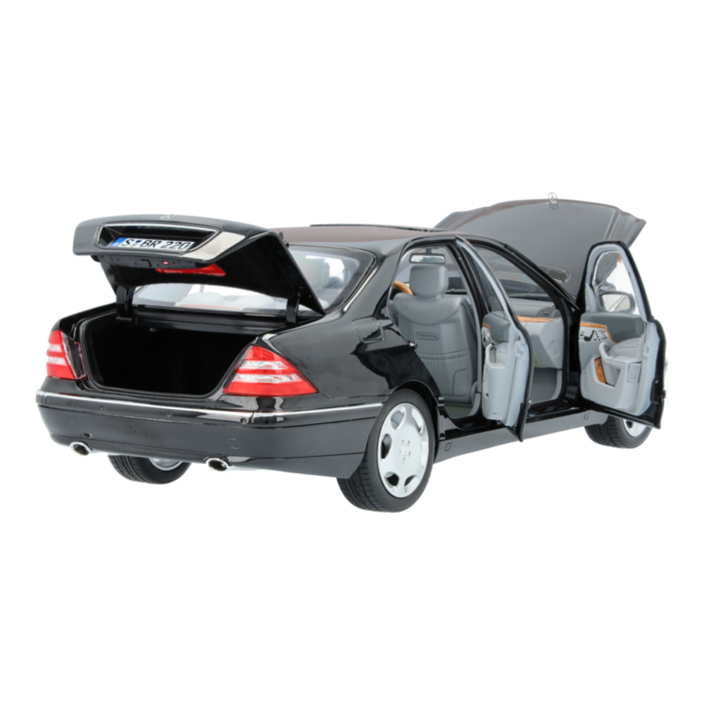 Dynamiczny design połączony z innowacjami technicznymi – sekret sukcesu Klasy S, seria modelowa, która od swojej światowej premiery w 1998 roku podnosi komfort jazdy na nowy poziom dzięki inteligentnym systemom wspomagania i nowym rozwiązaniom. model tej klasy: S 600, wprowadzony w 1999 roku, wyposażony w potężny silnik V12 i obiecujące osiągi z maksymalnym momentem obrotowym 530 Nm przy 4100 obr./min w każdej sytuacji. Ręcznie składany, precyzyjny model repliki S 600 Sedan i przekonuje swoją dbałością o szczegóły. W rezultacie model jest nie tylko wykończony w autentycznym kolorze, ale ma również dokładnie odwzorowane wnętrze i dokładnie odwzorowuje wszystkie szczegóły wnętrza oryginału. Drzwi, maskę i klapę bagażnika można otworzyć, co pozwala dokładniej przyjrzeć się wnętrzu samochodu.