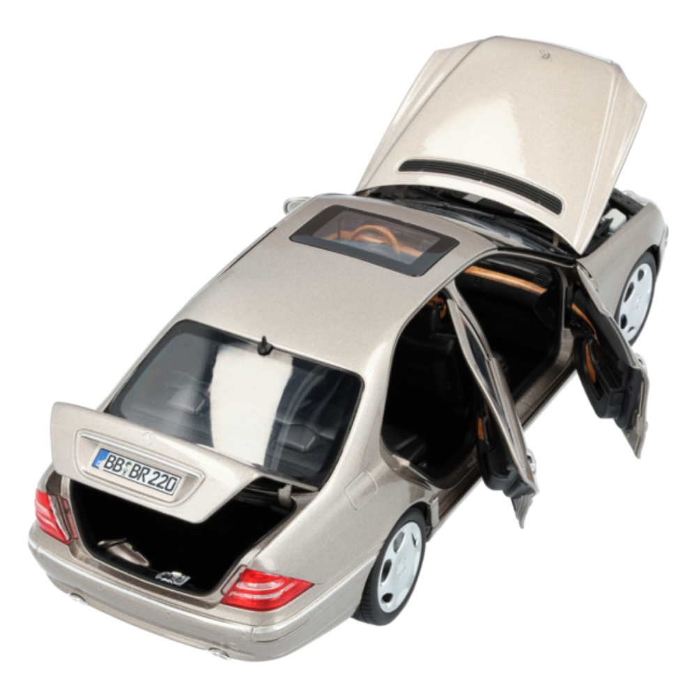 Dynamiczny design połączony z innowacjami technicznymi – sekret sukcesu Klasy S, seria modelowa, która od swojej światowej premiery w 1998 roku podnosi komfort jazdy na nowy poziom dzięki inteligentnym systemom wspomagania i nowym rozwiązaniom. model tej klasy: S 600, wprowadzony w 1999 roku, wyposażony w potężny silnik V12 i obiecujące osiągi z maksymalnym momentem obrotowym 530 Nm przy 4100 obr./min w każdej sytuacji. Ręcznie składany, precyzyjny model repliki S 600 Sedan i przekonuje swoją dbałością o szczegóły. W rezultacie model jest nie tylko wykończony w autentycznym kolorze, ale ma również dokładnie odwzorowane wnętrze i dokładnie odwzorowuje wszystkie szczegóły wnętrza oryginału. Drzwi, maskę i klapę bagażnika można otworzyć, co pozwala dokładniej przyjrzeć się wnętrzu samochodu.