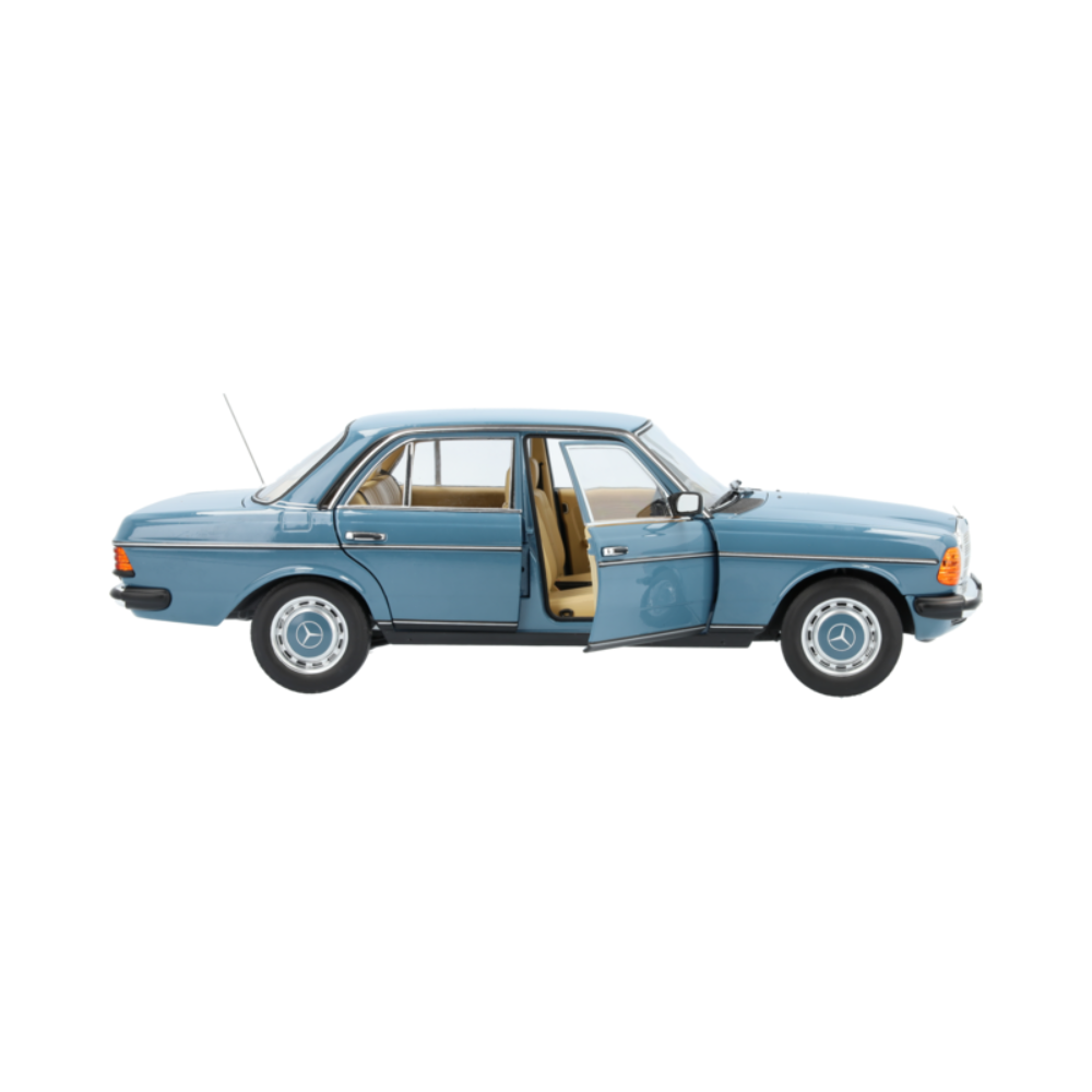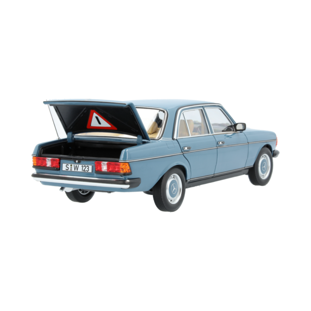 Dziesięć lat produkcji, prawie 2,7 miliona pojazdów: jako następca modeli „Stroke Eight” nowy pojazd segmentu executive W123 wyznaczył nowe standardy w dziedzinie bezpieczeństwa pojazdów. Podobnie jak wersja duża, miniaturowy model W123 inspiruje najwyższą dbałością o szczegóły. W rezultacie ręcznie składany, precyzyjny model jest nie tylko wykończony w autentycznym kolorze, ale także ma dokładnie odwzorowane wnętrze. Drzwi, maskę i tylną klapę modelu można otworzyć, co pozwala na dokładniejszą inspekcję wnętrza samochodu. Model samochodu jest dostarczany w opakowaniu Mercedes-Benz Classic i zawiera śrubokręt, który umożliwia łatwe wyjęcie modelu. Rękawica jest również zawarta w dostawie jako ochrona przed odciskami palców na szybach lub lakierem nadwozia na modelu.