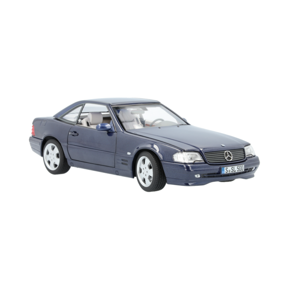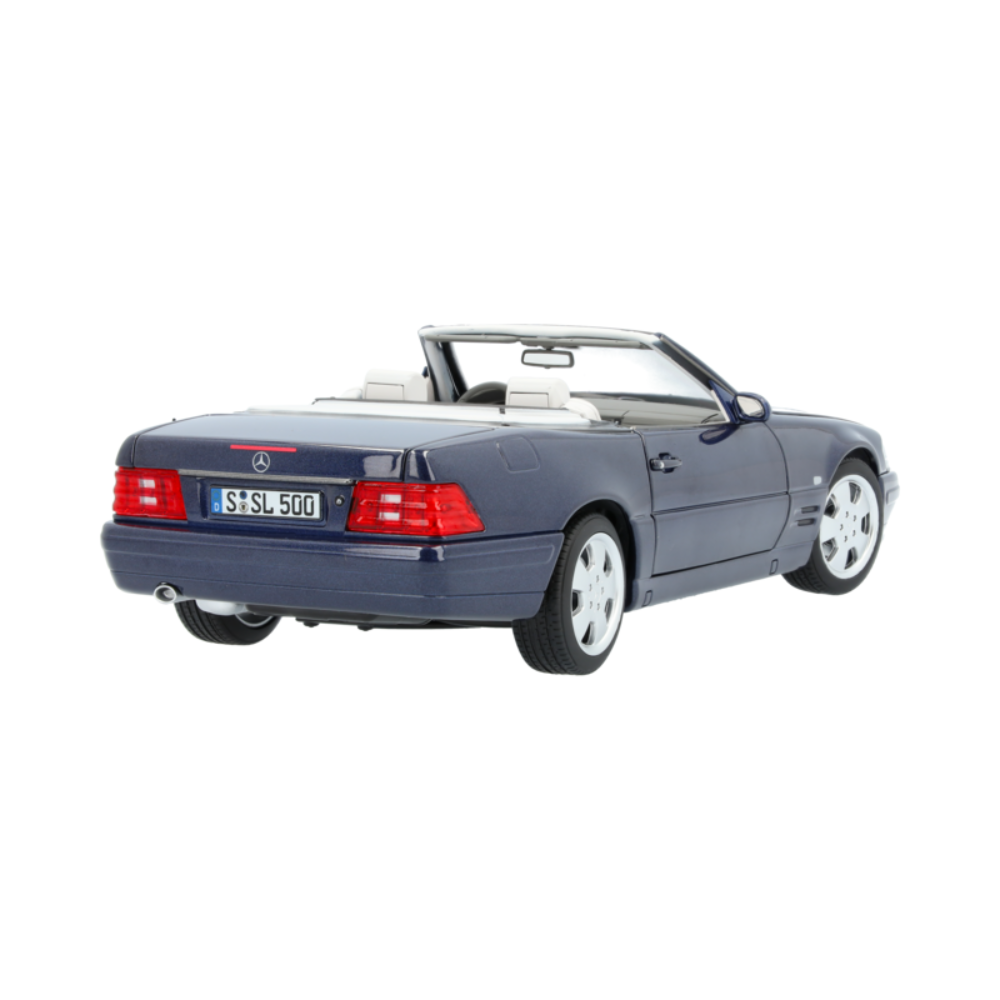 Jednorodny design, umiejętnie wyrażający dynamikę, sportowy charakter oraz komfort i elegancję: w 1989 roku seria modelowa 129 SL była jedną z głównych atrakcji Salonu Samochodowego w Genewie, który urzekał innowacjami technicznymi. Czy to rozkładany pałąk zabezpieczający przed dachowaniem, zintegrowane siedzenia zwiększające ochronę w przypadku zderzenia bocznego, owiewka skutecznie redukująca hałas i przeciąg wiatru, czy też mocny silnik o mocy 306 KM, który charakteryzował się również niską emisją spalin: SL 500 był punktem odniesienia. Ten ręcznie składany, precyzyjny model SL 500, odwzorowujący oryginał w najdrobniejszych szczegółach, wzbogaci każdą kolekcję. Model samochodu jest wykończony w autentycznym kolorze lakieru i ma dokładnie odwzorowane wnętrze pod każdym względem. - Drzwi, maskę i klapę bagażnika modelu można otworzyć. Model SL 500 jest dostarczany w opakowaniu Mercedes-Benz Classic. Zawiera śrubokręt do łatwego wyjmowania modelu oraz rękawicę chroniącą przed odciskami palców na szybach lub lakierze.