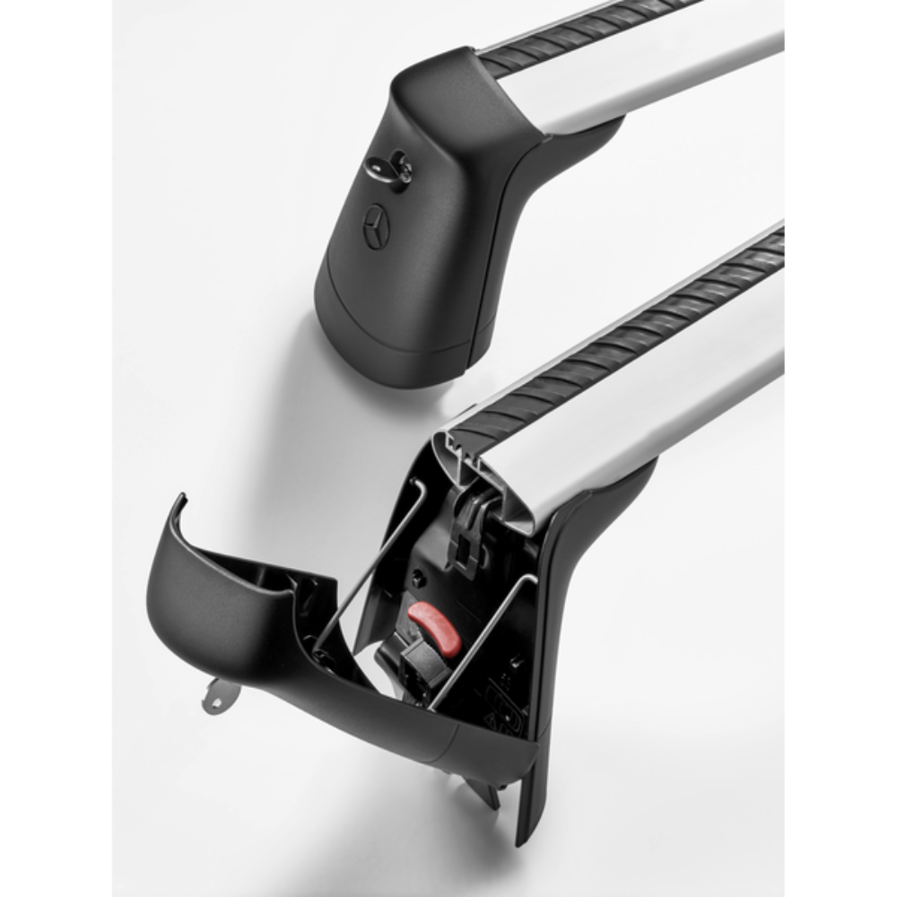 Aluminiowe poprzeczki nośne, precyzyjnie dopasowane do nadwozia Twojego Mercedes-Benz - idealna podstawa dla szeregu akcesoriów transportowych Mercedes-Benz: bagażnika na narty i deski snowboardowe, bagażnika na rowery lub bagażników dachowych. Ze zintegrowanym narzędziem do szybkiego i łatwego montażu. Asymetryczny profil aerodynamiczny poprawia komfort jazdy poprzez znaczne zmniejszenie hałasu wiatru. Testowany na zderzenie. Zamknięcie na klucz zabezpiecza przed kradzieżą. Testowane zgodnie z wysokimi standardami Mercedes-Benz (łącznie z miejskim testem zderzeniowym)