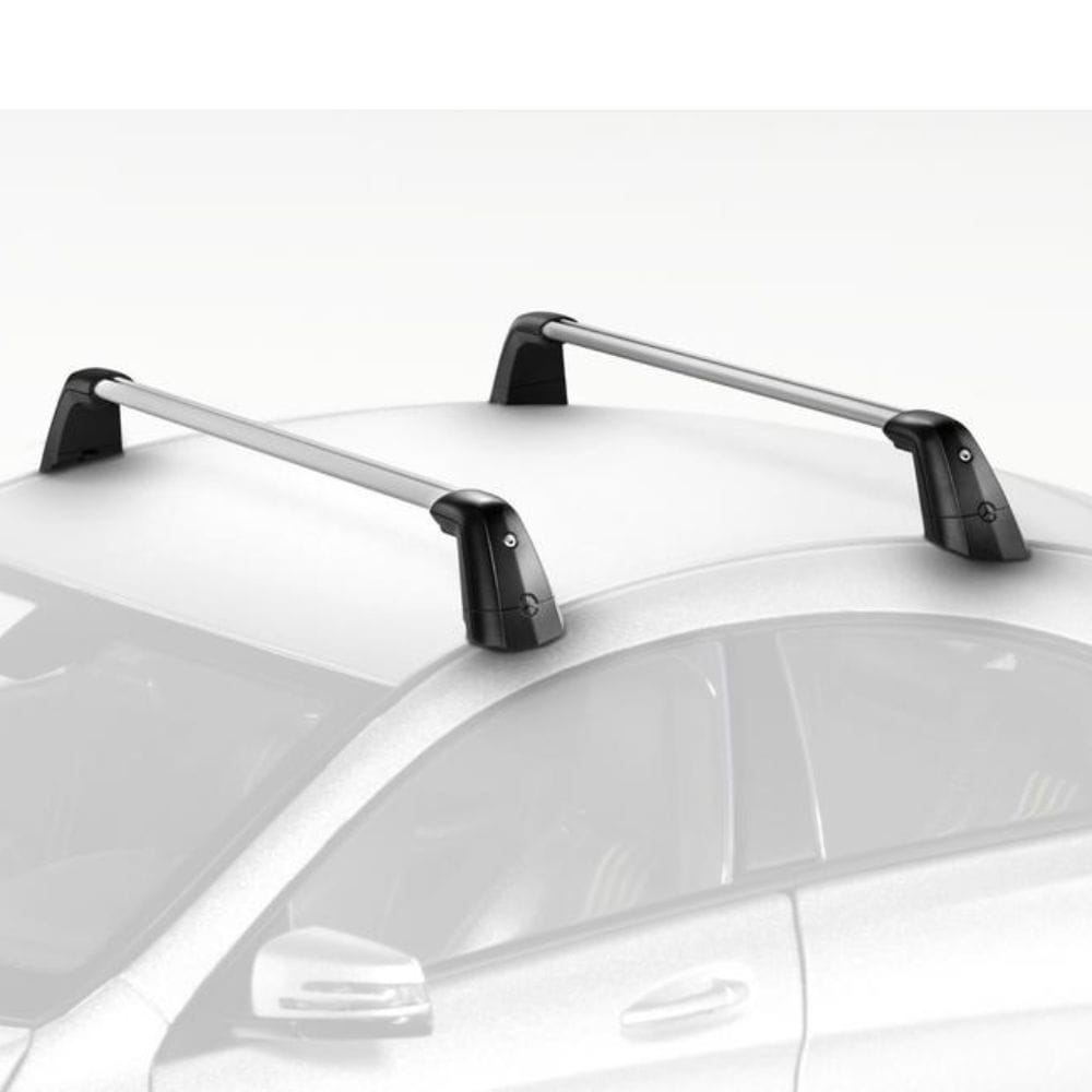 Aluminiowy bagażnik dopasowany dokładnie do nadwozia Twojego pojazdu Mercedes-Benz, składający się z dwóch poprzeczek wraz z profilami osłonowymi.