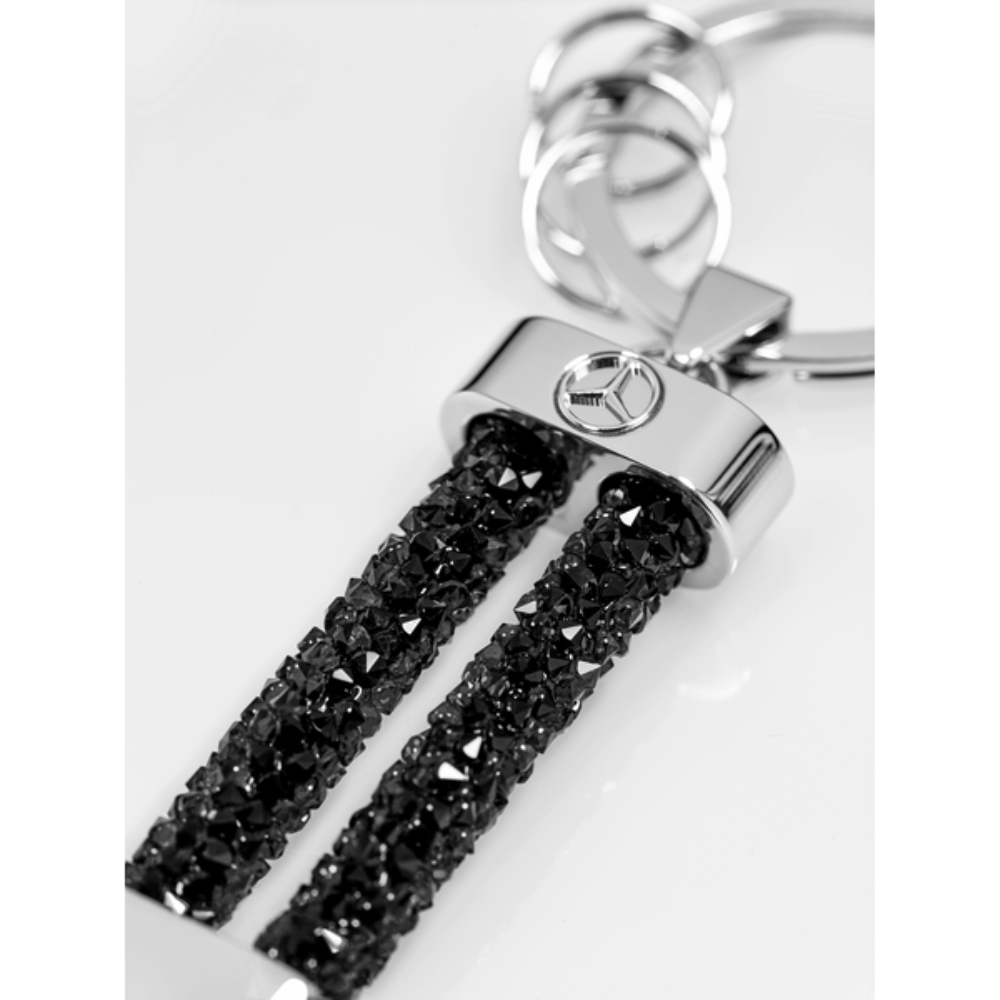 Breloczek do kluczy ozdobiony kryształkami Swarovskiego®. Płaskie odczepiane kółko z trzema małymi odczepianymi kółkami do szybkiej wymiany lub zdejmowania pojedynczych kluczy.