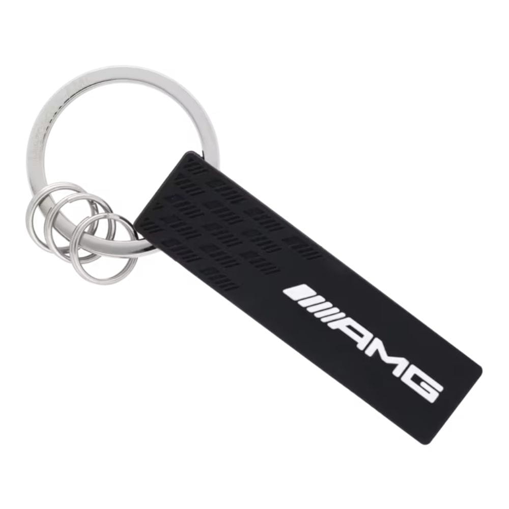 Klucze do drzwi wejściowych, klucze do biura, kluczyki do samochodu: wszystko, co ważne, ma swoje miejsce na breloku do kluczy AMG. Brelok, którego czarna podstawa jest wykonana z materiału opony, ma wzór w romby i białe logo AMG, ma duży dzielony pierścień z laserowym napisem Mercedes-AMG. Dodatkowo akcesorium zostało wyposażone w trzy dodatkowe mini dzielone pierścienie, dzięki którym z łatwością można doczepić i wyjąć poszczególne klucze.