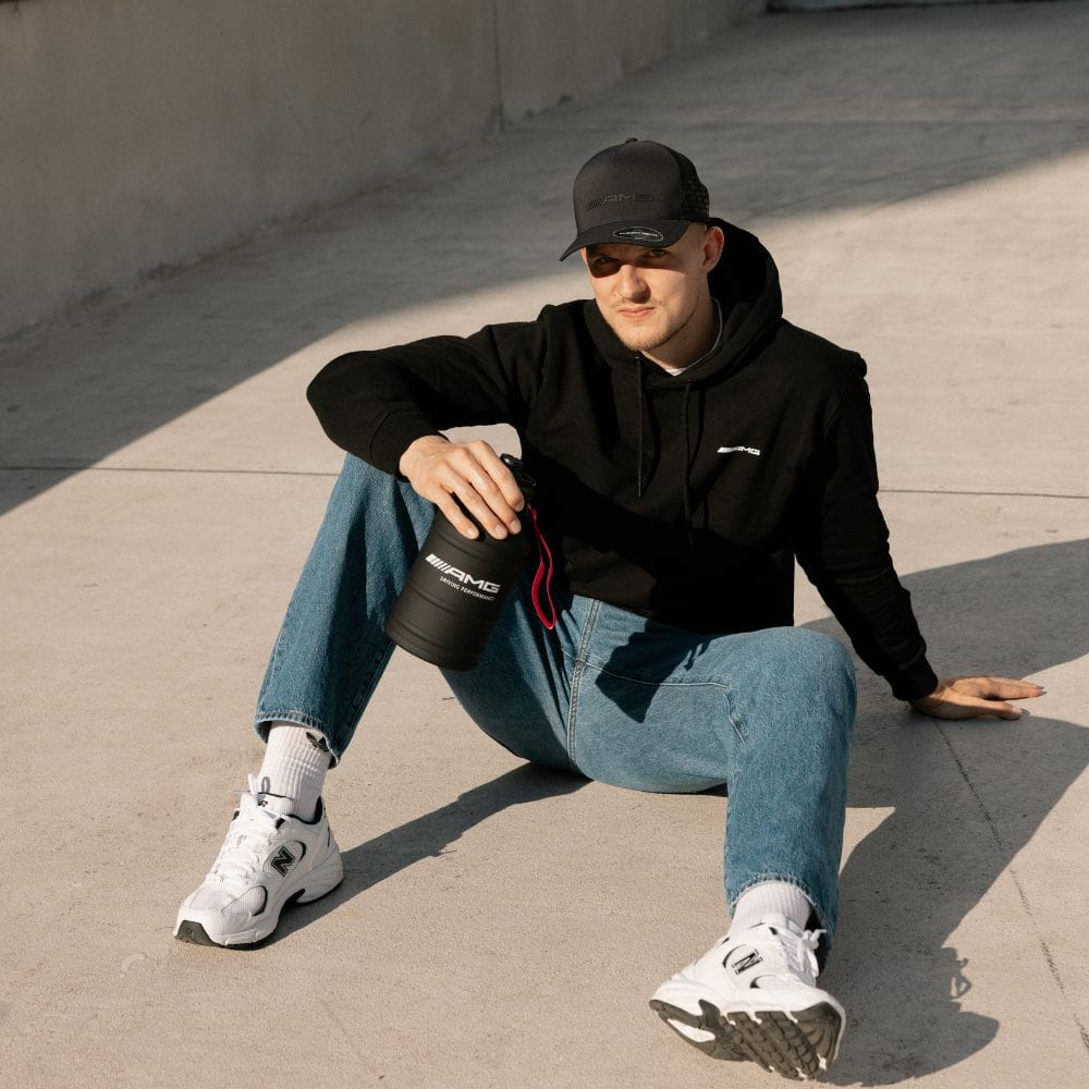 Logo AMG w delikatnym białym kolorze stanowi nie tylko wyraz prestiżu, ale także świadczy o wysokiej jakości tego produktu. Butelka termos w kolorze czarnym z wyraźnie widocznym logo AMG to połączenie funkcjonalności, stylu i klasy.