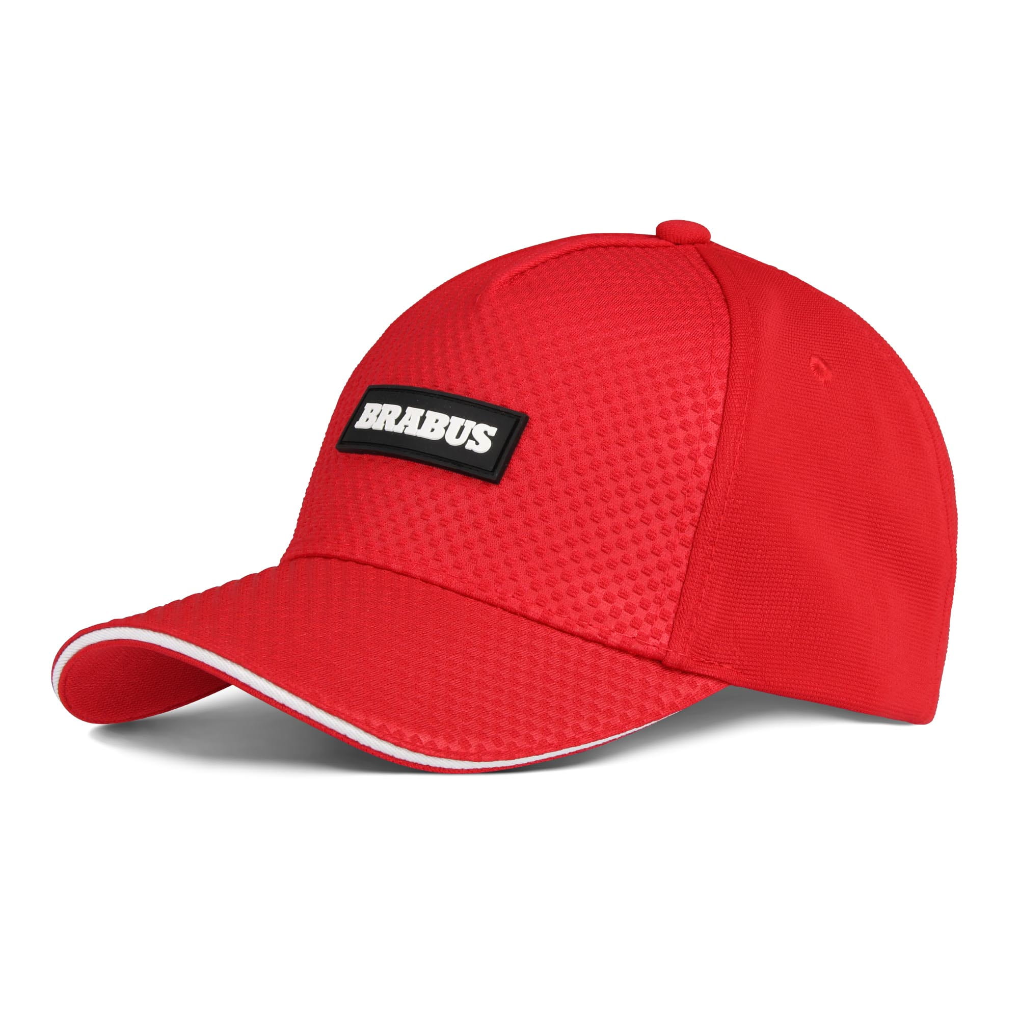 Daszek czapki ozdobiony białym paskiem, który podkreśla jej sportowy wygląd. Na przodzie logo BRABUS w biało-czarnym akcencie.