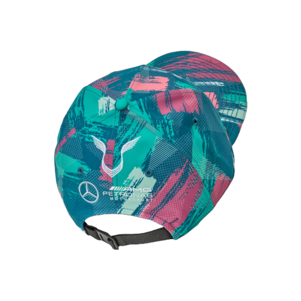 Jako edycja specjalna na Grand Prix Hiszpanii F1 2019, czapka ma wielokolorowy design i już na pierwszy rzut oka widać, kto przyspiesza bicie serca. Haftowane logo Mercedesa z przodu i logo Lewis Hamilton Wings z tyłu sprawiają, że ta czapka naprawdę przyciąga wzrok. Wykonana w 100% z poliestru i wyposażona w tkany i elastyczny ściągacz/klips, czapka zapewnia optymalny komfort noszenia.