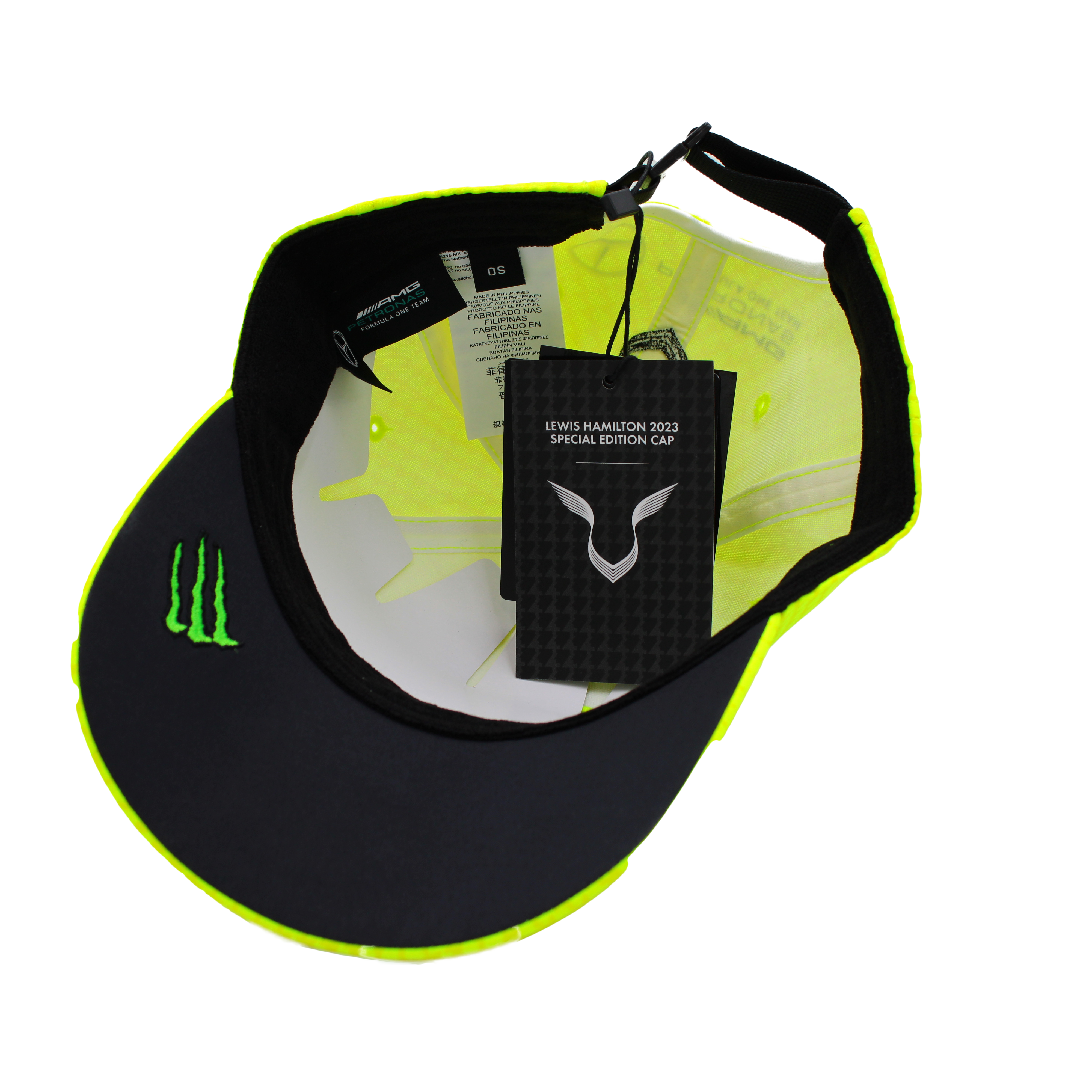 Z okazji 10. rocznicy pracy Lewis Hamiltona jako kierowcy w zespole Mercedes-Benz Formuła 1, czapka bejsbolówka Lewis Hamilton jest dostępna w różnych wariantach kolorystycznych na sezon F1 2023. Wzór pięcioklapkowej czapki bejsbolówki został zaprojektowany w kratkę w stylu "houndstooth" i nawiązuje do numeru Lewisa - 44. Aby dostosować ją do każdego kształtu głowy, czapka z gwiazdą Mercedes, logo zespołu Mercedes-AMG F1, skrzydłami Lewisa Hamiltona i różnymi innymi logo, można regulować rozmiarem, co zapewnia wygodę noszenia na co dzień oraz na torze wyścigowym.