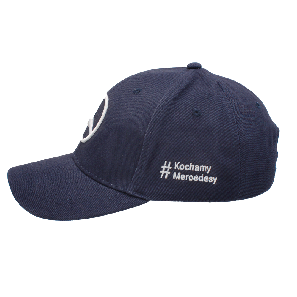 Elegancka czapka z daszkiem #KochamyMercedesy to doskonały wybór dla każdego fana marki, który chce wyrazić swoją miłość do samochodów z logo gwiazdy. Wykonana jest z wysokiej jakości 100% bawełny, co gwarantuje komfort noszenia i doskonałą jakość. Czapka posiada regulację, dzięki czemu pasuje na każdą głowę.