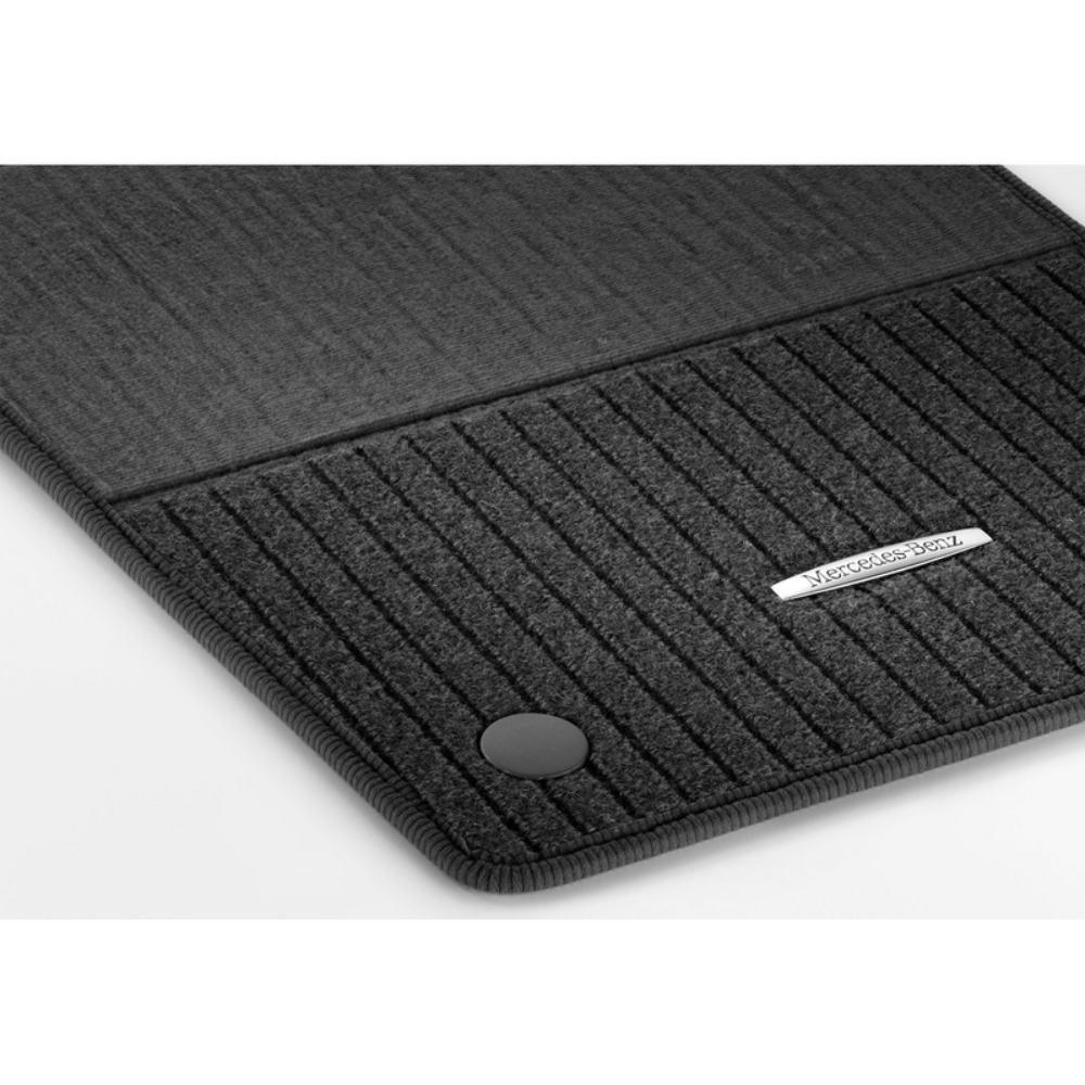 Maty podłogowe muszą przejść rygorystyczne testy, zanim zostaną uznane za godne logo gwiazdy: trwałość, odporny na blaknięcie kolor i neutralny zapach, nawet po trzech zimach użytkowania. Dywaniki są precyzyjnie dopasowane do Twojego samochodu Mercedes-Benz przy użyciu oryginalnych danych fabrycznych pojazdu. Można przymocować do podłogi za pomocą zatrzasków, aby zapobiec ślizganiu.