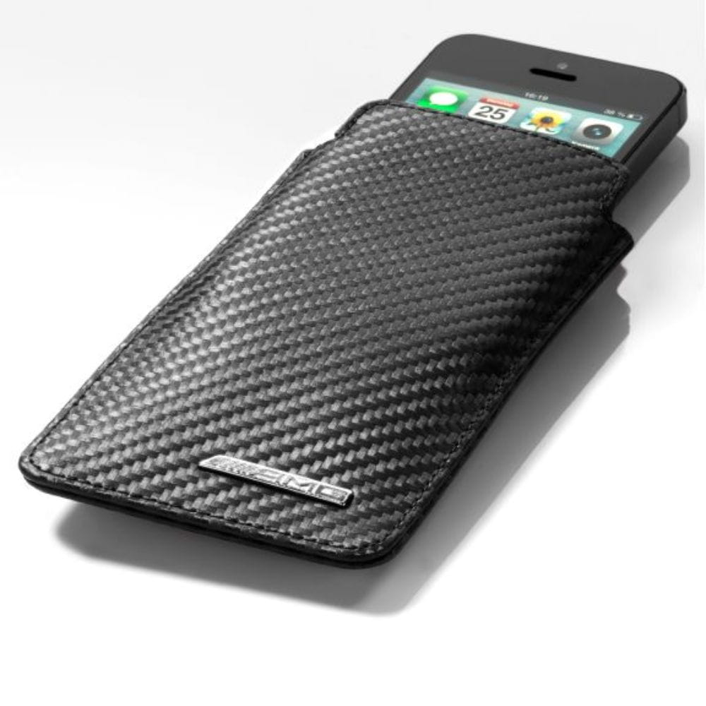 Włókno węglowe to materiał emanujący ekskluzywnością, sportowym charakterem i jakością. Zastosowana tutaj czarna skóra ma powłokę z efektem włókna węglowego. Powierzchnia jest poddawana specjalnej obróbce, dzięki czemu materiał jest odporny na wodę i brud. Z przodu znajduje się metalowa plakietka AMG. Etui jest odpowiednie dla iPhone’a® 5.