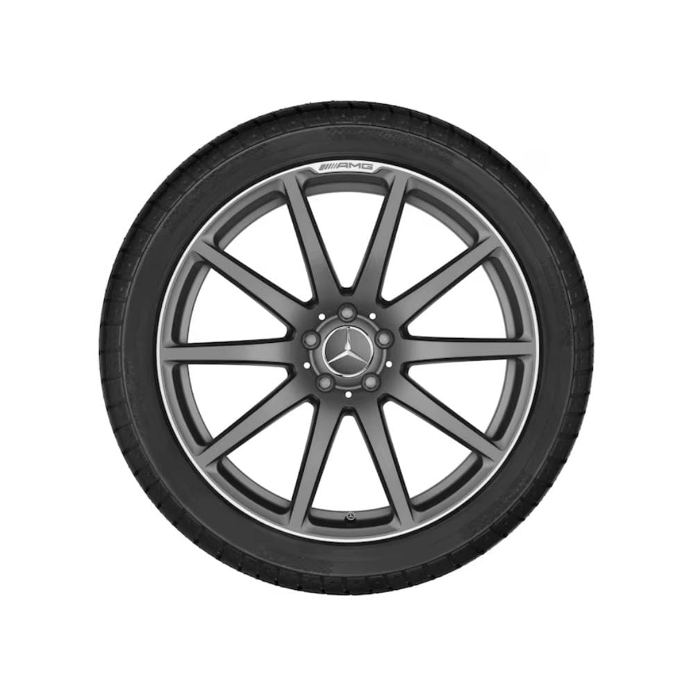 Felgi aluminiowe AMG są dostarczane bez opon, dekli, nakrętek wentyli, śrub koła ani zabezpieczeń obręczy.