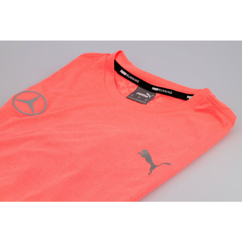 Funkcyjna koszulka męska Mercedes-Benz. dryCELL optymalnie przepuszcza wilgoć. Technologia Thermo R+. Różne paski odblaskowe. Firma PUMA dla Mercedes-Benz.