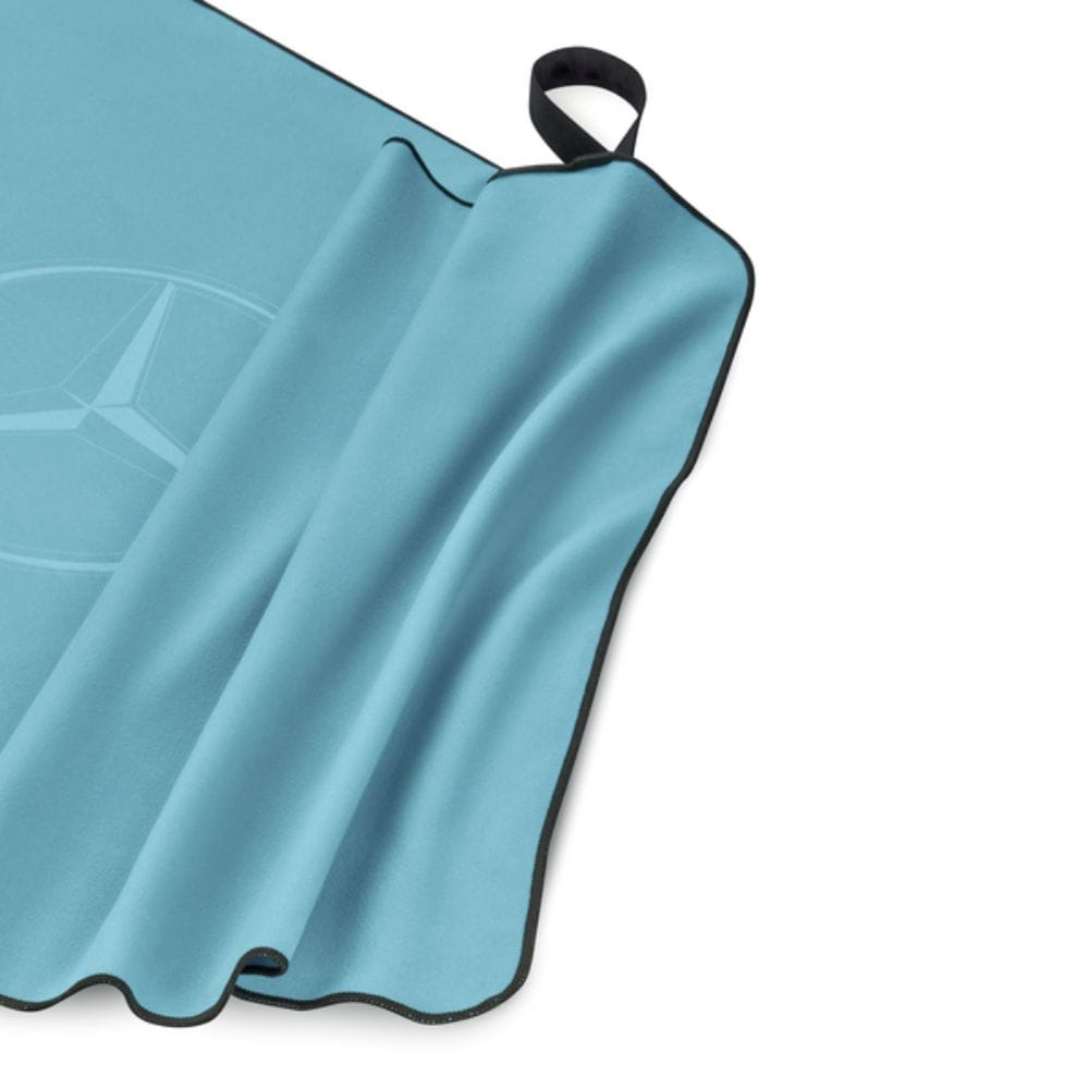 Niezależnie od tego, czy chodzi o codzienną higienę osobistą, czy o uprawianie sportu, funkcjonalny ręcznik wykonany z poliestru pochodzącego z recyklingu ma wszechstronne zastosowanie i dzięki elastycznemu paskowi można go zawiesić praktycznie w dowolnym miejscu do wyschnięcia. Czarny, obszyty szew kontrastuje z turkusową powierzchnią tkaniny. Wytłoczona gwiazda Mercedesa doskonale uzupełnia design tego funkcjonalnego ręcznika.