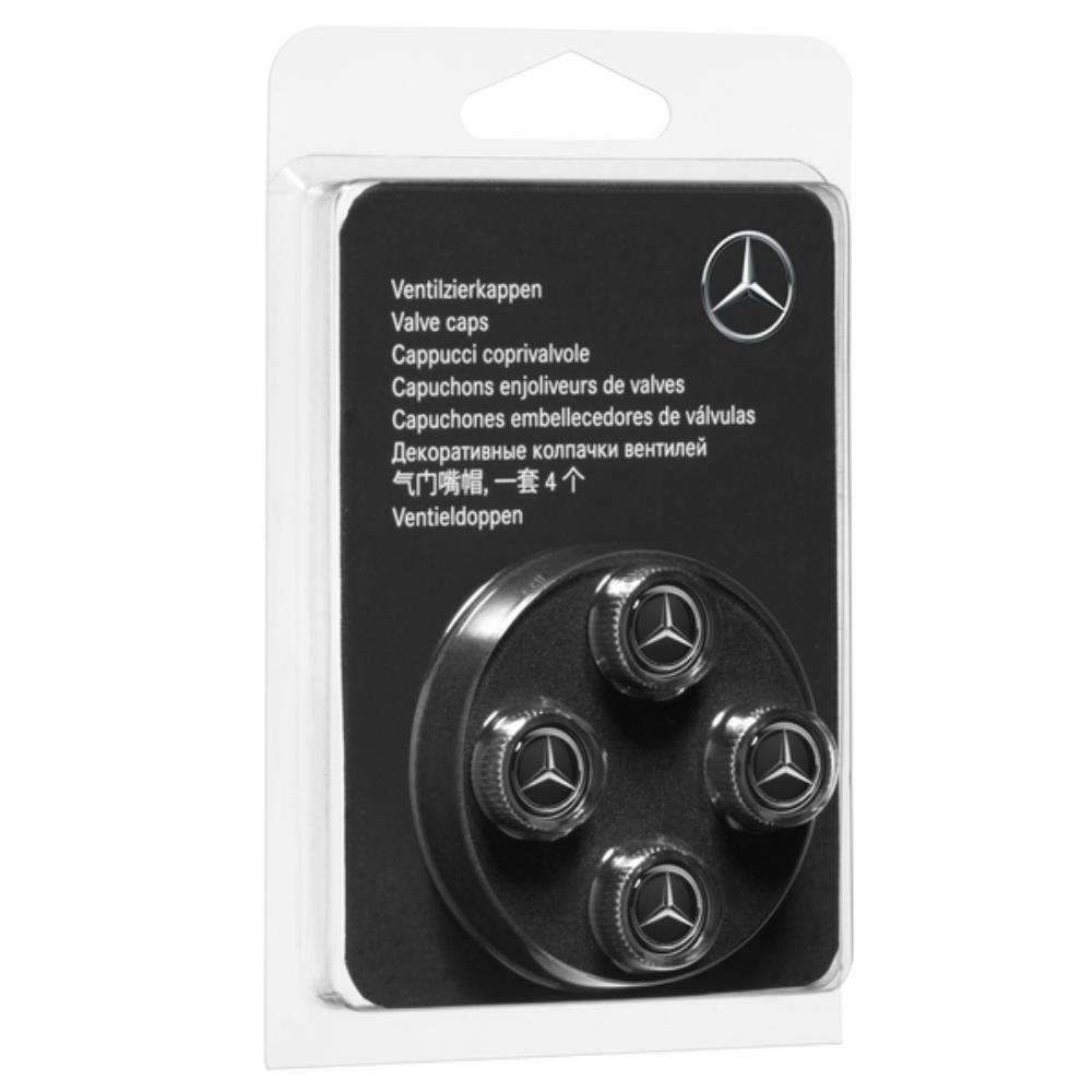 Ozdobne zaślepki do zaworów, chromowane. Logo gwiazdy wytłoczone z przodu, pod przezroczystym plastikiem. Zestaw 4 sztuk w blistrze. Nadaje się również do zaworów monitorujących ciśnienie w oponach.