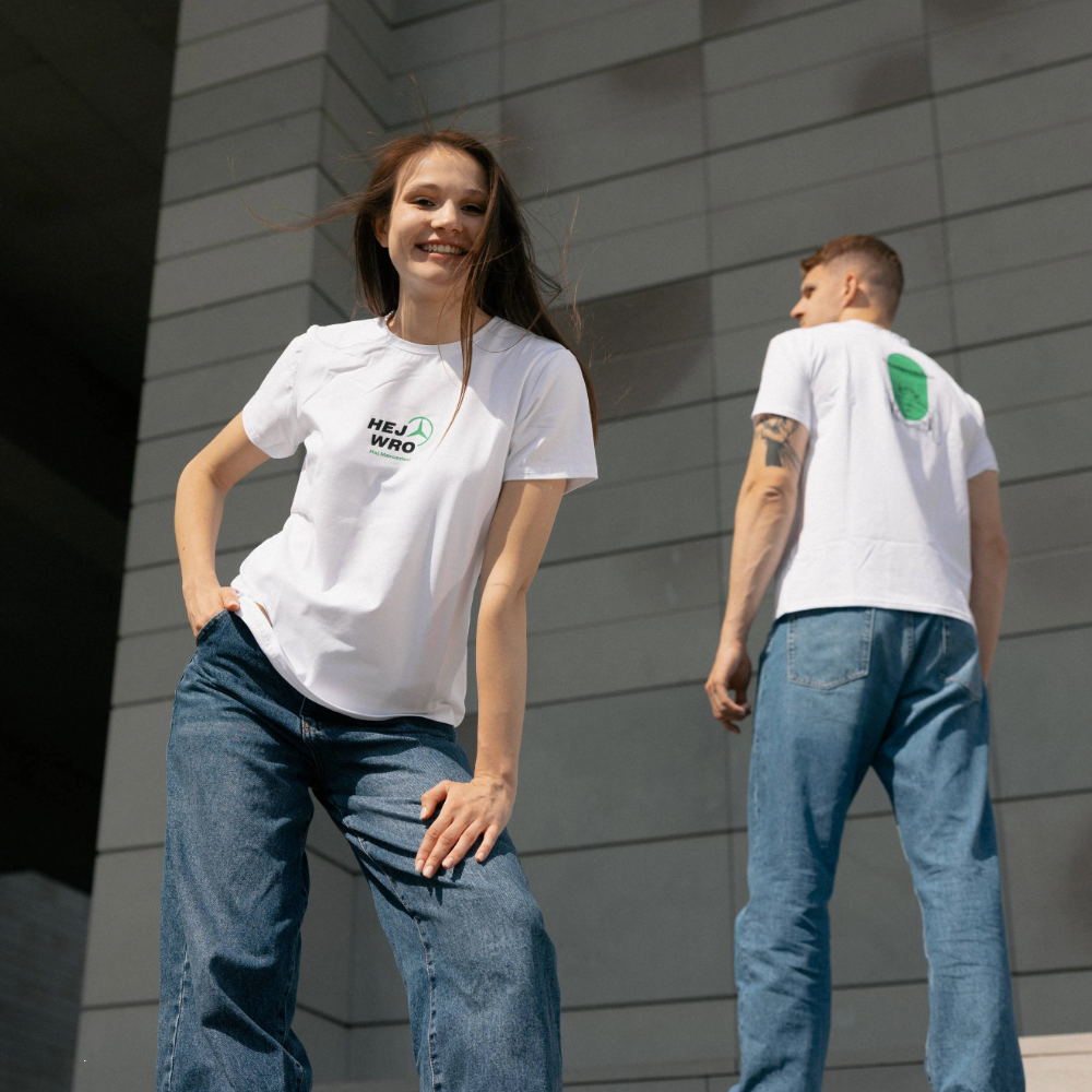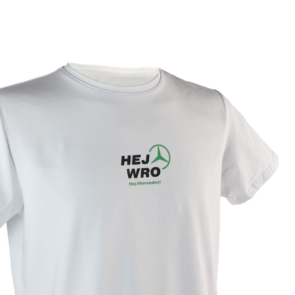 Stylowa i wygodna koszulka damska Mercedes-Benz "Hej Wro" to idealny wybór dla fanek marki oraz miłośniczek Mercedes-Benz. Wykonana z wysokiej jakości, miękkiej i oddychającej bawełny, zapewnia komfort noszenia na co dzień – zarówno w mieście, jak i w trasie.