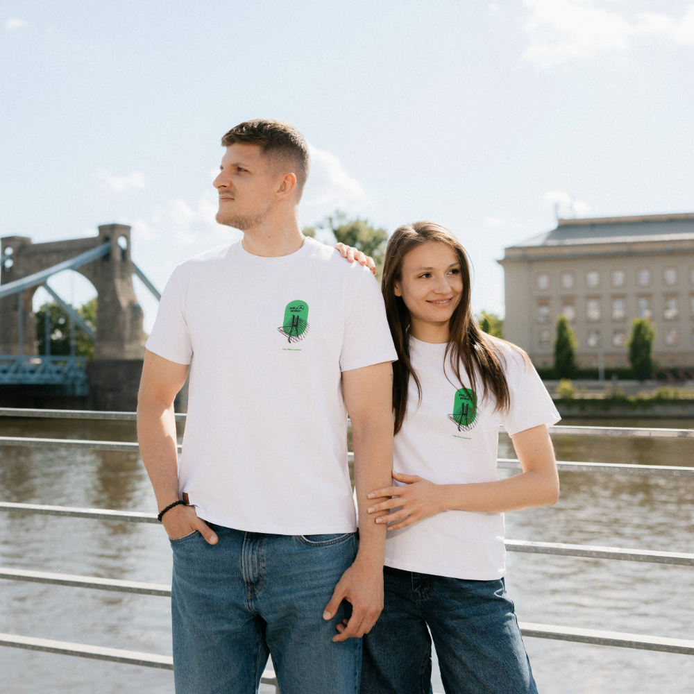 Biała koszulka męska Mercedes-Benz "Hej Wro" to stylowa propozycja łącząca motoryzacyjną elegancję z miejskim charakterem Wrocławia. Na froncie znajduje się subtelna grafika przedstawiająca wrocławski most oraz minimalistyczne, klasyczne logo Mercedesa, nadające całości wyjątkowego stylu.