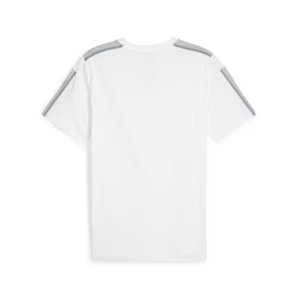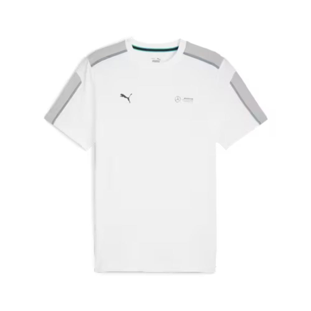 Idealny wybór na ciepłe dni na torze wyścigowym: koszulka Mercedes-AMG F1, która pasuje zarówno mężczyznom, jak i kobietom, zachwyca komfortem noszenia w regularnym kroju, a także sportowym designem. Ten jednokolorowy wygląd jest wzmocniony logo MERCEDES-AMG PETRONAS FORMULA ONE TEAM i nadrukiem logo PUMA Cat.
