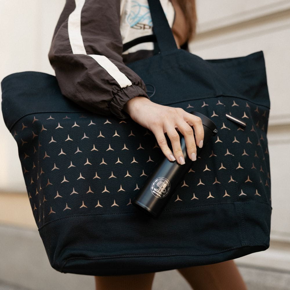 Kubek termiczny #KochamyMercedesy ma pojemność 320 ml. Jest to praktyczny i stylowy sposób na przechowywanie Twojego ulubionego napoju. Ma prosty, poręczny, nowoczesny kształt i wykonany jest w klasycznym czarnym kolorze z czarnym z srebrnymi elementami, które dodają mu wyjątkowego charakteru.