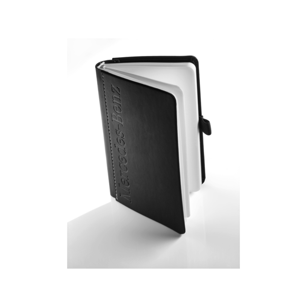 Mały, poreczny notebook Lanybook w rozmiarze DIN A6 gwarantuje, że o rzeczach nie zapomnisz tak łatwo. Niezależnie od tego, czy są to spontaniczne pomysły, czy ważne notatki: wszystko można udokumentować w praktycznym notatniku. Lanybook z wysokiej jakości oprawą nitkową jest dostarczany z czarną okładką i łącznie 192 pustymi stronami papieru FSC, co zapewnia prawdziwy komfort pisania. Ostatnie 32 strony są mikroperforowane i można je łatwo wyrwać. Szara zakładka, elastyczna petelka na długopis i tkana opaska Lanyband uzupełniają projekt. Notatnik ma również bardzo atrakcyjny wygląd. Czarny design jest zatem dodatkowo podkreślony gwiazdą 3D jako Lanybutton i wytłoczonym napisem Mercedes-Benz na okładce.
