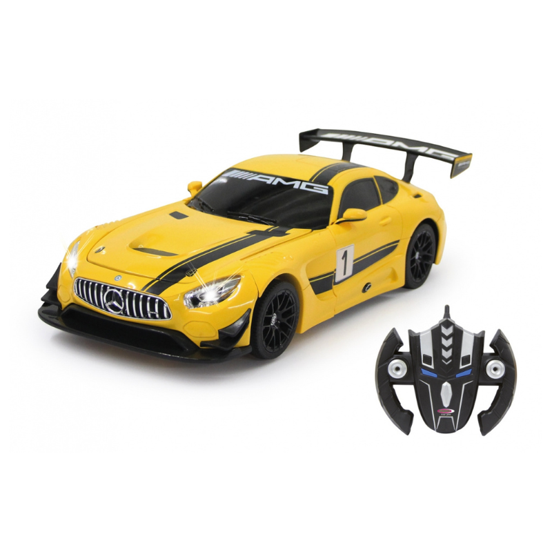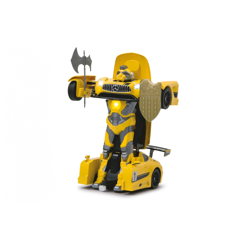 Modelik AMG GT3 za pomocą jednego klikniecia zmienia sie w robota. W zestawie znajduje sie pilot w kształcie tarczy za pomocą którego można sterować modelikiem.