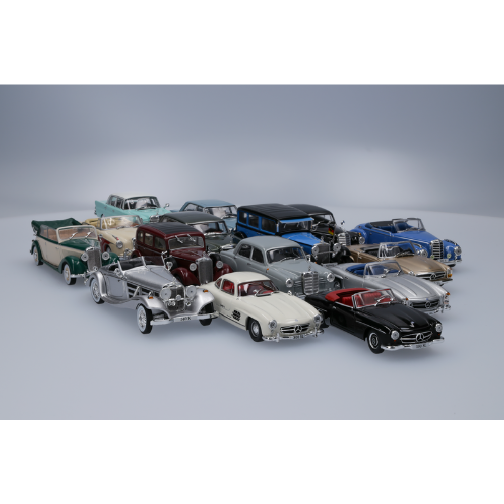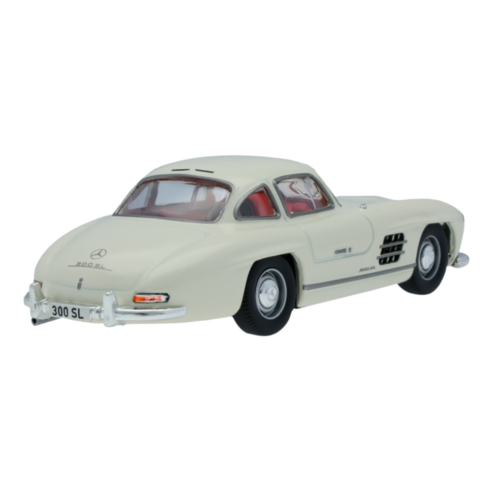 Miniaturowy model wyczynowego samochodu sportowego, zaprojektowany z cynkowego odlewu ciśnieniowego z elementami z tworzywa sztucznego został stworzony przy użyciu oryginalnych danych CAD. Ta dokładna reprodukcja znajduje również odzwierciedlenie w wysokiej jakości wykończeniu wnętrza we wszystkich jego detalach. Mercedes-Benz 300 SL jest zamontowany na zadrukowanej podstawie, w pudełku prezentacyjnym. Ten klasyk jest dostarczany w designerskim opakowaniu Mercedes-Benz Classic.