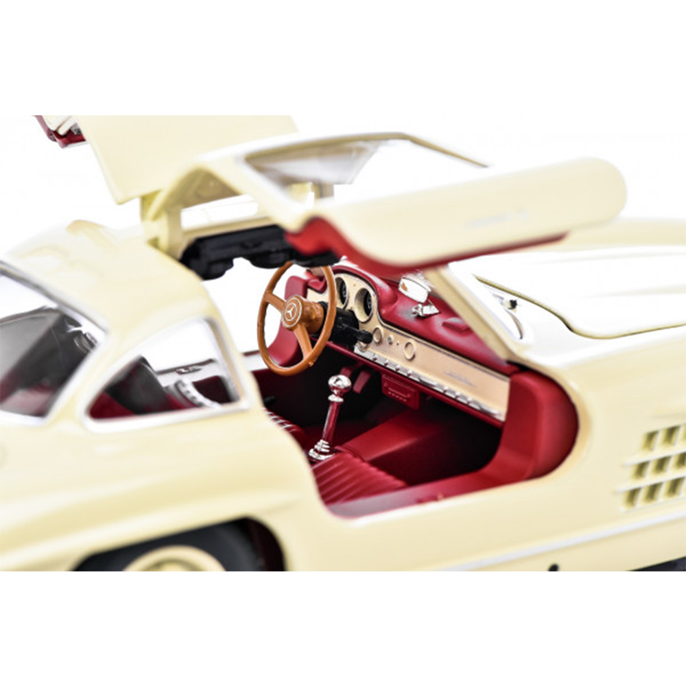 Mercedes-Benz „Gullwing” jest teraz dostępny jako miniaturowy model do Twojej osobistej kolekcji i zachwyca swoją zawiłością. W beżowym wykończeniu na wysoki połysk dbałość o szczegóły w tym modelu jest naprawdę uderzająca. Oba otwierane do góry, odchylane do góry drzwi można otworzyć, aby umożliwić dokładniejszą inspekcję wysokiej jakości wydrukowanego wnętrza i wierne odwzorowanie wszystkich oryginalnych detali wnętrza.
