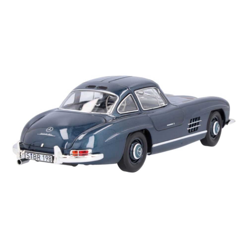 Pojazd kolekcjonerski, który do dziś nie stracił nic ze swojego uroku: legendarnym Gullwing Coupé firma Mercedes-Benz zaprezentowała w 1954 r. pierwszy rasowy samochód sportowy z gwiazdą. Do maja 1957 r. w Sindelfingen wyprodukowano 1400 egzemplarzy tego samochodu, 29 z nich miało nadwozie ze stopów lekkich i jeden pojazd eksperymentalny z nadwoziem z tworzywa sztucznego. Miniaturowy model 300 SL to wiernie odwzorowana replika, która sprawi, że serce każdego kolekcjonera zabije szybciej. Ręcznie składany model zachwyca nie tylko lakierem w autentycznym kolorze, ale także szczegółowym odwzorowaniem wszystkich szczegółów wnętrza. Drzwi, maskę i pokrywę bagażnika tego modelu można otworzyć, co pozwala na dokładniejsze obejrzenie wnętrza samochodu. Model samochodu dostarczany jest w opakowaniu Mercedes-Benz Classic i zawiera śrubokręt ułatwiający wyjmowanie oraz rękawicę chroniącą przed odciskami palców na szybach i lakierze.