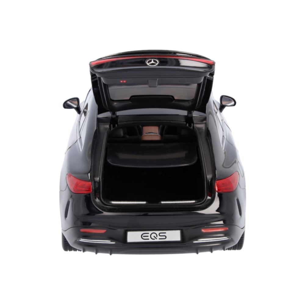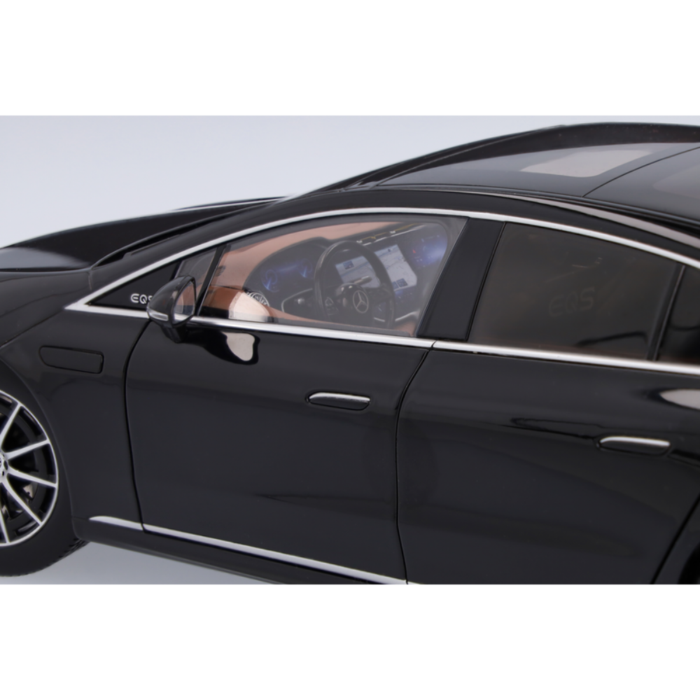 Niezwykle dokładny, ręcznie montowany precyzyjny model został stworzony przy użyciu oryginalnych danych CAD, a jego atrakcyjne cechy obejmują autentyczny kolor lakieru oraz wierną oryginałowi replikę szczegółowego wnętrza. Drzwi i tylną klapę tego modelu można otworzyć, co pozwala na bliższe przyjrzenie się wnętrzu samochodu, które zachwyca wysokiej jakości wykonaniem oraz wyłożoną flokiem kabiną pasażerską i podłogą bagażnika. Miniaturowy model EQS Limuzyna jest dostarczany w opakowaniu Mercedes-Benz EQ i zawiera śrubokręt ułatwiający zdejmowanie modelu oraz rękawicę chroniącą przed odciskami palców.
