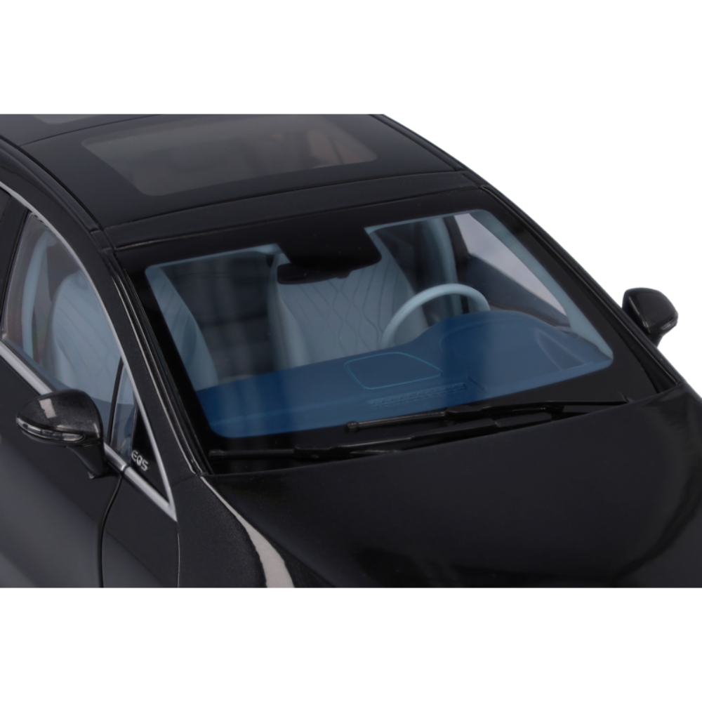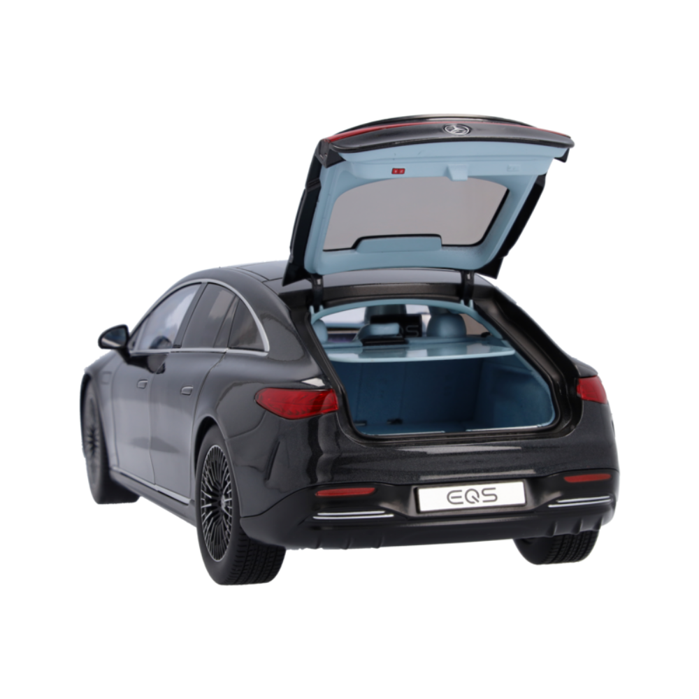 Niezwykle dokładny, ręcznie montowany precyzyjny model został stworzony przy użyciu oryginalnych danych CAD, a jego atrakcyjne cechy obejmują autentyczny kolor lakieru oraz wierną oryginałowi replikę szczegółowego wnętrza. Drzwi i tylną klapę tego modelu można otworzyć, co pozwala na bliższe przyjrzenie się wnętrzu samochodu, które zachwyca wysokiej jakości wykonaniem oraz wyłożoną flokiem kabiną pasażerską i podłogą bagażnika. Miniaturowy model EQS Limuzyna jest dostarczany w opakowaniu Mercedes-Benz EQ i zawiera śrubokręt ułatwiający zdejmowanie modelu oraz rękawicę chroniącą przed odciskami palców.