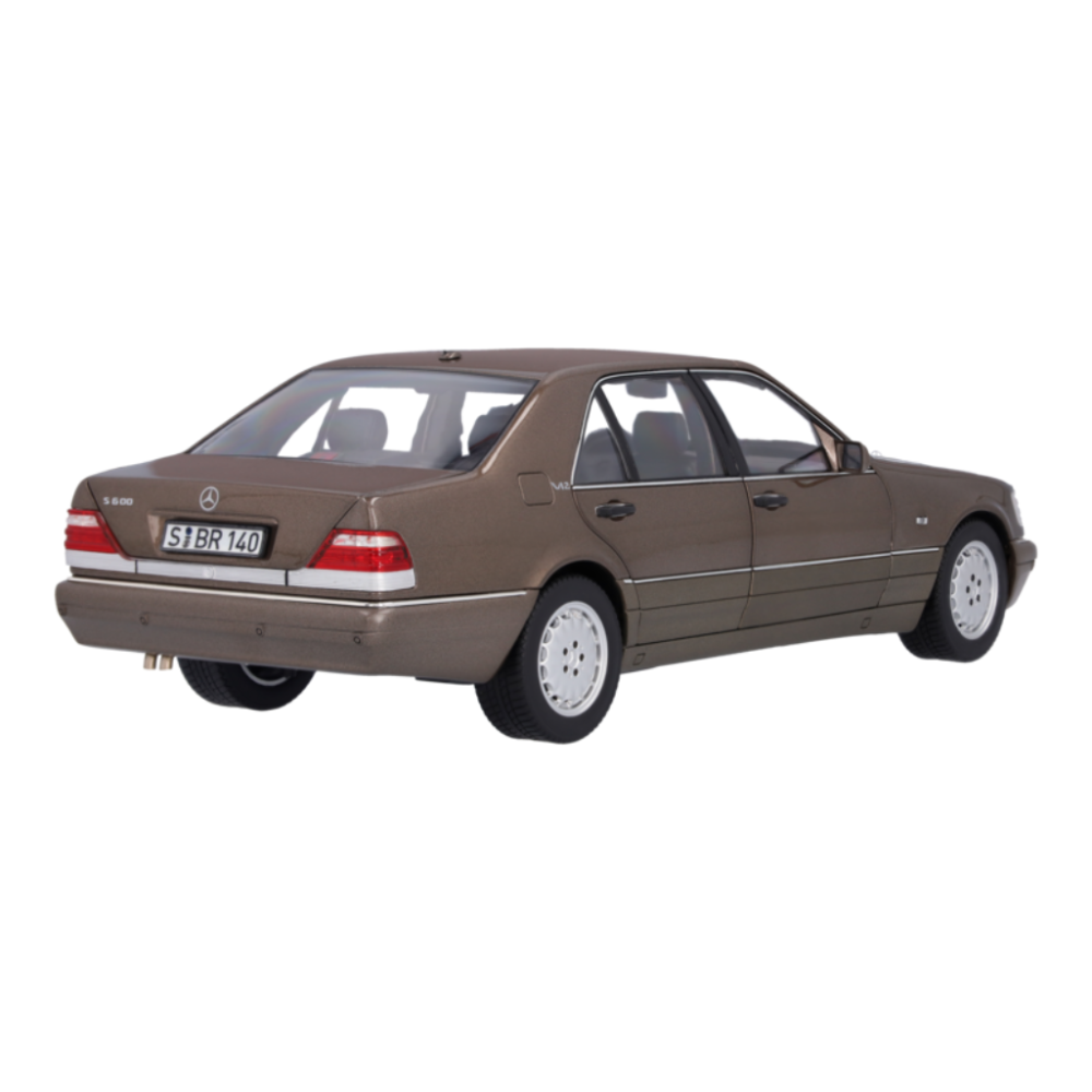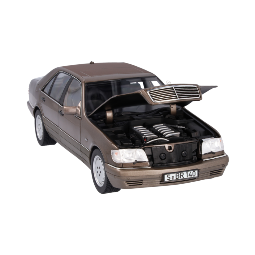 W 1991 roku na Salonie Samochodowym w Genewie zaprezentowano najnowszą generację Klasy S, której konstrukcja nadwozia została oparta na tradycyjnych, typowych dla Mercedes-Benz elementach stylistycznych. Podobnie jak w przypadku modeli SL serii 129, także w przypadku nowej Klasy S, osłona chłodnicy jako charakterystyczny znak towarowy została na nowo zinterpretowana stylistycznie, zachowując jednocześnie tradycyjny podstawowy kształt. Zaledwie kilka lat później, w 1994 r., sedany Klasy S zaprezentowały subtelną stylistycznie zmianę, w wyniku której uzyskano wizualnie lżejszy i bardziej dynamiczny wygląd. Głównym czynnikiem wpływającym na harmonijny ogólny wygląd Klasy S była również formalna zmiana tyłu. Dolne promienie łączników pokrywy bagażnika zostały zaokrąglone, podobnie jak w modelach coupe. Całkowicie przeprojektowano także 6,0-litrowy silnik V12 M 120. Dzięki mocy znamionowej 300 kW (408 KM) przeszedł on do historii jako najmocniejszy silnik samochodu osobowego Mercedes-Benz. W 1995 r. zmiany ponownie skupiały się głównie na szczegółach technicznych, takich jak 5-biegowa automatyczna skrzynia biegów ze sprzęgłem mostkowym przemiennika momentu obrotowego. Silniki zostały ponownie zmodyfikowane, aby jeszcze bardziej zmniejszyć zużycie paliwa i emisję zanieczyszczeń. Do września 1998 r. zaprzestano produkcji 406 532 sedanów serii 140. Miniaturowy model składający się ze 120 pojedynczych części, który został wykonany z najwyższą szczegółowością według oryginalnych danych CAD, wpisuje się właśnie w tę tradycję. Wyprodukowany w międzynarodowej skali 1:18, ręcznie złożony, precyzyjny model jest pomalowany na autentyczny kolor i wiernie odwzorowuje wszystkie szczegóły wnętrza. Wnętrze i podłoga bagażnika również są flokowane. Można otworzyć sześć części modelu samochodu (drzwi, maskę i tylną klapę), aby zapewnić widok do wnętrza pojazdu. Model dostarczany jest w opakowaniu Mercedes-Benz Classic z rękawiczką i śrubokrętem. Precyzyjny model można wyjąć z opakowania bez pozostawiania odcisków palców na szybie lub korpusie.