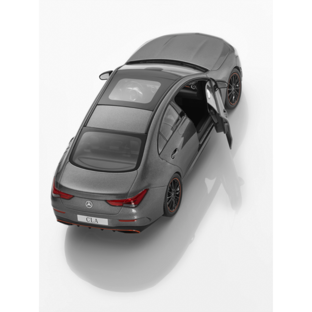 Miniaturowy model CLA Coupé AMG Line C118 został odtworzony z niezwykłą dokładnością w oparciu o oryginalne dane CAD. Model auta jest pomalowany na autentyczny kolor, wszystkie detale w wysokiej jakości wykończonym wnętrzu charakteryzują się dokładnym odwzorowaniem. Poziom wyposażenia samochodu, na którym bazuje ten model, obejmuje elementy zewnętrzne i wnętrze linii AMG, reflektory LED High Performance, panoramiczny dach oraz wieloramienne obręcze kół AMG ze stopu metali lekkich 48,3 cm (19 cali).