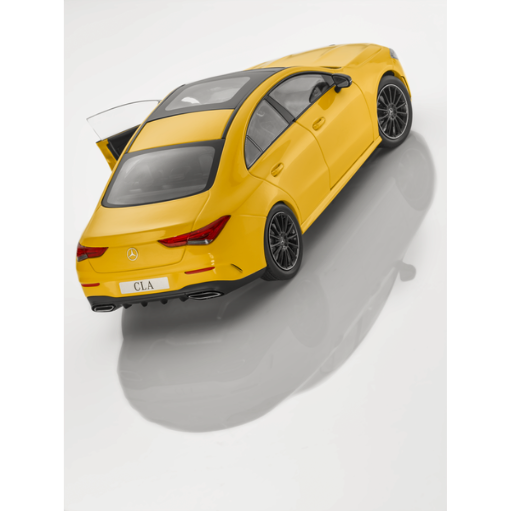 Miniaturowy model CLA Coupé AMG Line C118 został odtworzony z niezwykłą dokładnością w oparciu o oryginalne dane CAD. Model auta jest pomalowany na autentyczny kolor, wszystkie detale w wysokiej jakości wykończonym wnętrzu charakteryzują się dokładnym odwzorowaniem. Poziom wyposażenia samochodu, na którym bazuje ten model, obejmuje elementy zewnętrzne i wnętrze linii AMG, reflektory LED High Performance, panoramiczny dach oraz wieloramienne obręcze kół AMG ze stopu metali lekkich 48,3 cm (19 cali).