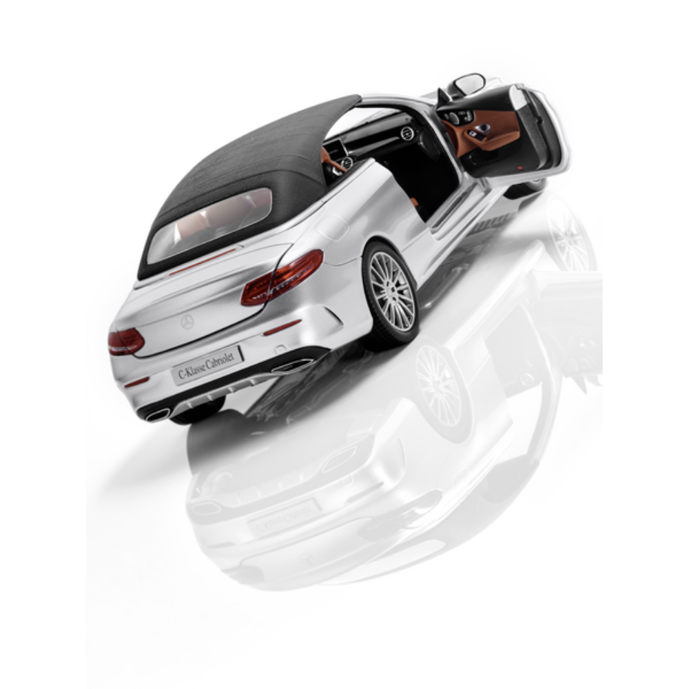 Linia AMG na zewnątrz i we wnętrzu, inteligentny system oświetlenia LED i 19-calowe wieloramienne obręcze kół AMG ze stopu metali lekkich: ten miniaturowy model Klasy C Cabriolet (A205) jest pełen szczegółów i został stworzony z wykorzystaniem oryginalnych danych CAD pojazdu. Model jest wykończony autentycznym lakierem, posiada wysokiej jakości drukowane wykonane z ogromną dbałością o szczegóły. Są cztery otwierane części, a model jest wyposażony w oddzielny, dołączany miękki dach. Miniatura jest dostarczana w atrakcyjnym, designerskim opakowaniu Mercedes-Benz, które zawiera również śrubokręt do wyjmowania modelu z opakowania ze styropianu oraz rękawicę zapobiegającą odciskom palców na szybach i lakierze.