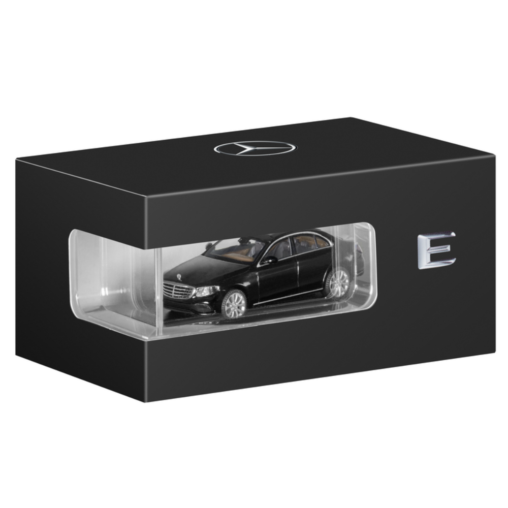 Bardzo dokładny miniaturowy model Klasy E, stworzony przy użyciu oryginalnych danych CAD, z pewnością wzbogaci każdą kolekcję. Wykończony w autentycznym kolorze lakieru i wyposażony w szczegółowo odwzorowane wnętrze, model przedstawia linię wyposażenia EXCLUSIVE z panoramicznym dachem i obręczami kół ze stopu metali lekkich 45,7 cm (18 cali) z 5 podwójnymi ramionami. Ręcznie składany precyzyjny model jest montowany na drukowanej podstawie i dostarczany w atrakcyjnym pudełku prezentacyjnym.