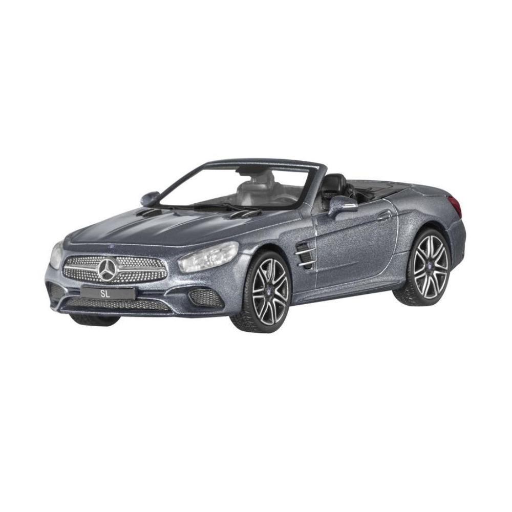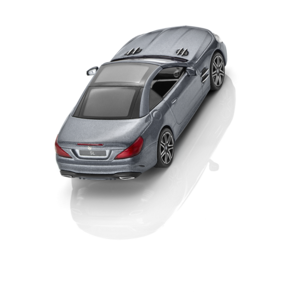 Sportowy, dwumiejscowy samochód w nowym designie: ten SL Roadster (R231) jest idealnym dodatkiem do każdej kolekcji. Miniatura jest niezwykle dokładną repliką modelu AMG Line z inteligentnym systemem oświetlenia LED, 7G-TRONIC PLUS i 48,3 cm (19-calowymi) obręczami kół AMG ze stopu metali lekkich z 7 podwójnymi ramionami i jest wykończona w autentycznym kolorze lakieru. Wnętrze jest równie efektowne i pełne szczegółów. Oddzielny dach roadstera dopełnia cechy modelu. Model jest zamontowany na drukowanej podstawie i jest dostarczany w atrakcyjnym pudełku prezentacyjnym w designerskim opakowaniu Mercedes-Benz.