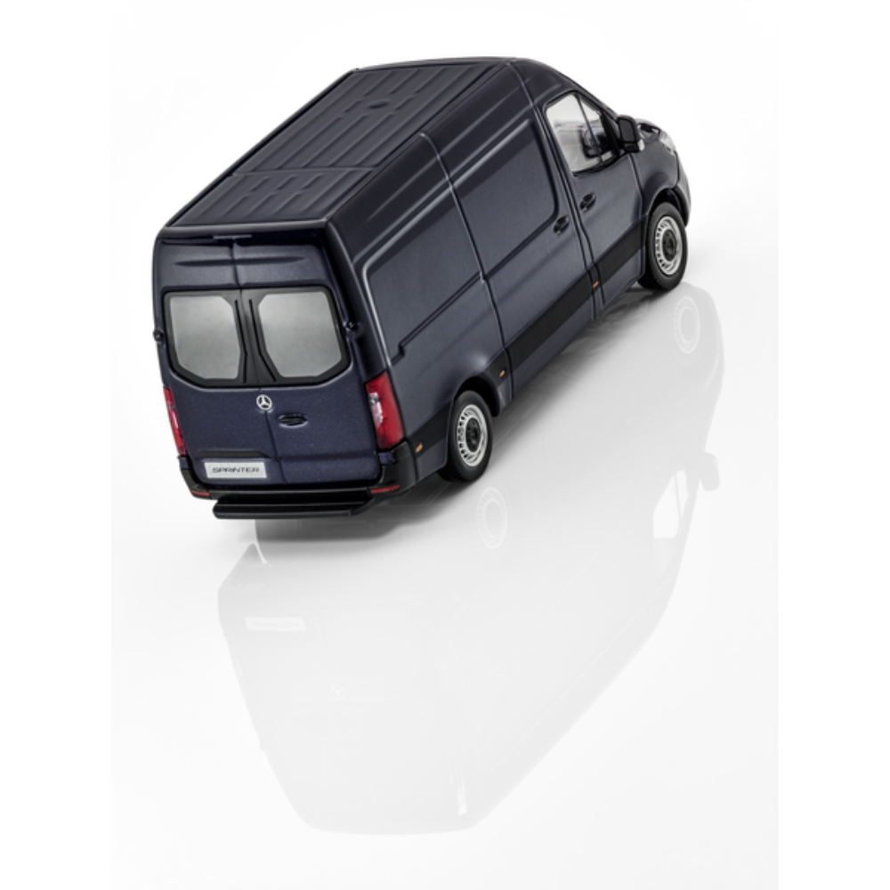 Ten model to najlepszy wybór dla wszystkich fanów kultowego furgonu Sprinter. Wykonany z odlewanego ciśnieniowo cynku z częściami z tworzywa sztucznego miniaturowy model został stworzony przy użyciu oryginalnych danych CAD. Malowany na autentyczny kolor, ten realistyczny model repliki jest atrakcją w każdej gablocie kolekcjonerskiej lub mile widzianą ozdobą na biurku. Zamontowany na drukowanej podstawie, zamknięty w pudełku prezentacyjnym i dostarczony w designerskim opakowaniu Mercedes-Benz.