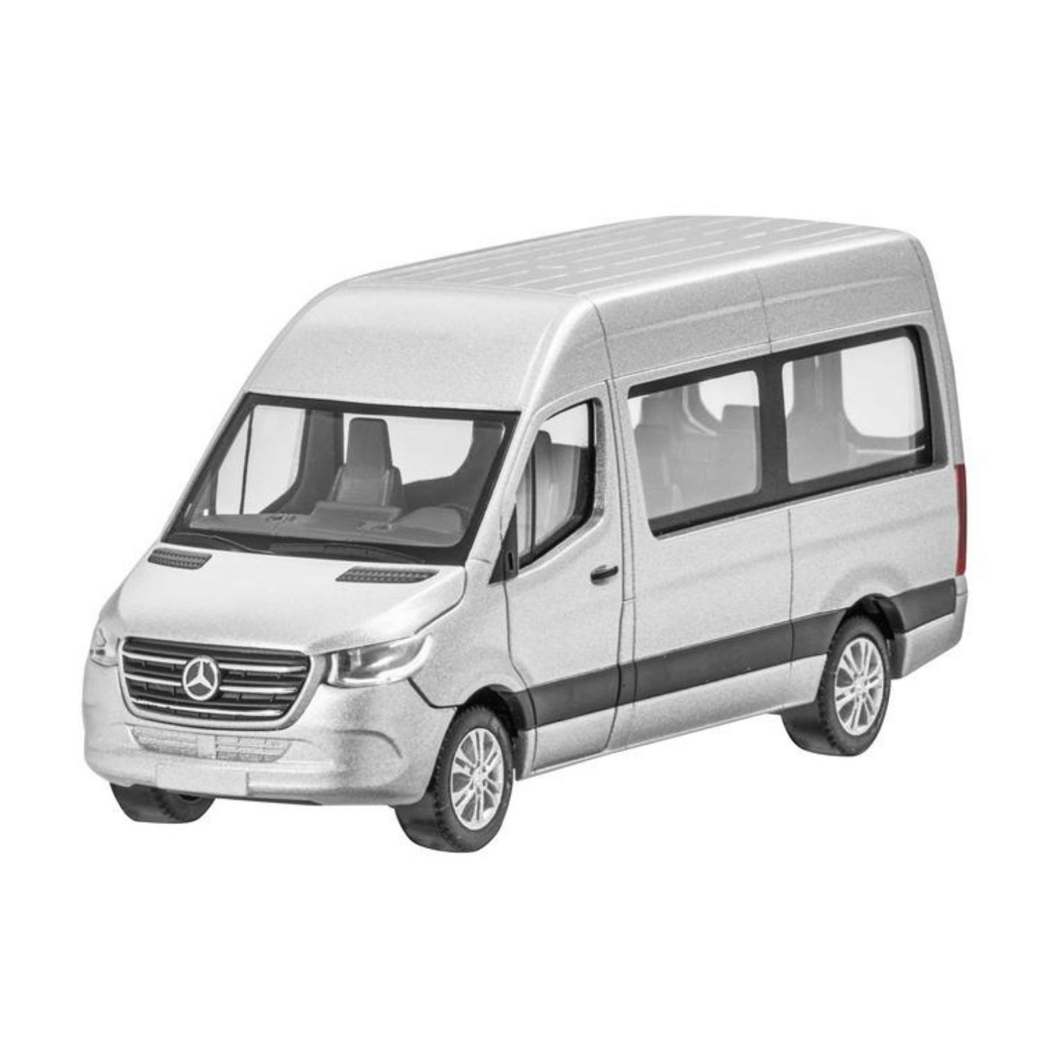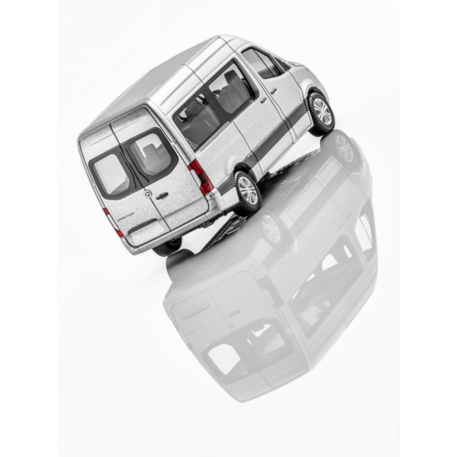 Miniaturowy model Sprintera osobowego jest odtworzeniem linii wyposażenia charakteryzującej się średnim rozstawem osi, wysokim dachem, miejscami dla 9 osób, przesuwanymi drzwiami po prawej stronie, oknami po lewej i prawej stronie, tylnymi drzwiami z szybami, malowaną ramą osłony chłodnicy i 6-ramienne obręcze kół ze stopów lekkich. Kolekcjonerzy mogą również spodziewać się starannej dbałości o szczegóły, ponieważ miniaturowy model oparty jest na oryginalnych danych CAD, ma autentyczny odcień kolorów i ma bardzo szczegółowe wnętrze. Model Sprinter Crewbus jest montowany na drukowanej podstawie w pudełku prezentacyjnym i dostarczany w designerskim opakowaniu Mercedes-Benz.