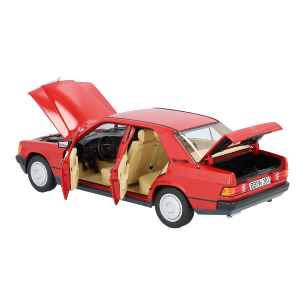 Podczas gdy Typ 190 miał silnik gaźnikowy, który został zmniejszony ze 109 KM do 90 KM dzięki zmniejszeniu wielkości otworów dolotowych i wydechowych oraz zastosowaniu nowego wałka rozrządu i zmodyfikowanych zaworów, 190 E posiadał nowo opracowaną wersję z wtryskiem benzyny. Precyzyjny model najwyższej klasy 190 E odwzorowuje oryginał w drobiazgowych szczegółach i wzbogaci każdą kolekcję. Model samochodu jest nie tylko pomalowany na autentyczny kolor, ale także szczegółowo przedstawia wnętrze.
