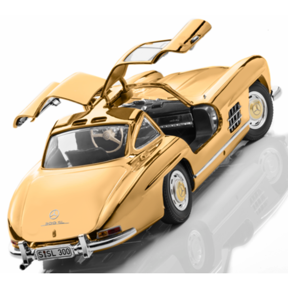 Sportowy samochód o uznanej wartości: zaprezentowany w lutym 1954 roku na Międzynarodowym Salonie Sportów Motoryzacyjnych w Nowym Jorku, 300 SL jest wzorowany na samochodzie wyścigowym z sezonu 1952 i przyciąga wzrok dzięki legendarnym drzwiom uchylnym do góry. „Gullwing” jest teraz dostępny jako miniaturowy model do twojej osobistej kolekcji i jest oszałamiający w swojej zawiłości.