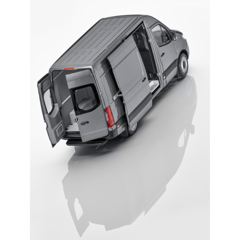 Model zachwyca zarówno na zewnątrz, jak i wewnątrz wiernie oddanym detalom z wysokiej jakości elementami stylistycznymi. Ma również cztery otwierane części (przednie, przesuwane, prawe i tylne). Miniaturowy Sprinter Furgon jest dostarczany w designerskim opakowaniu Mercedes-Benz, a do zestawu dołączony jest śrubokręt do łatwego odkręcenia śrub z opakowania styropianowego i wyjęcia modelu. Dołączona rękawica zapobiega również powstawaniu odcisków palców na lakierze i szkle.