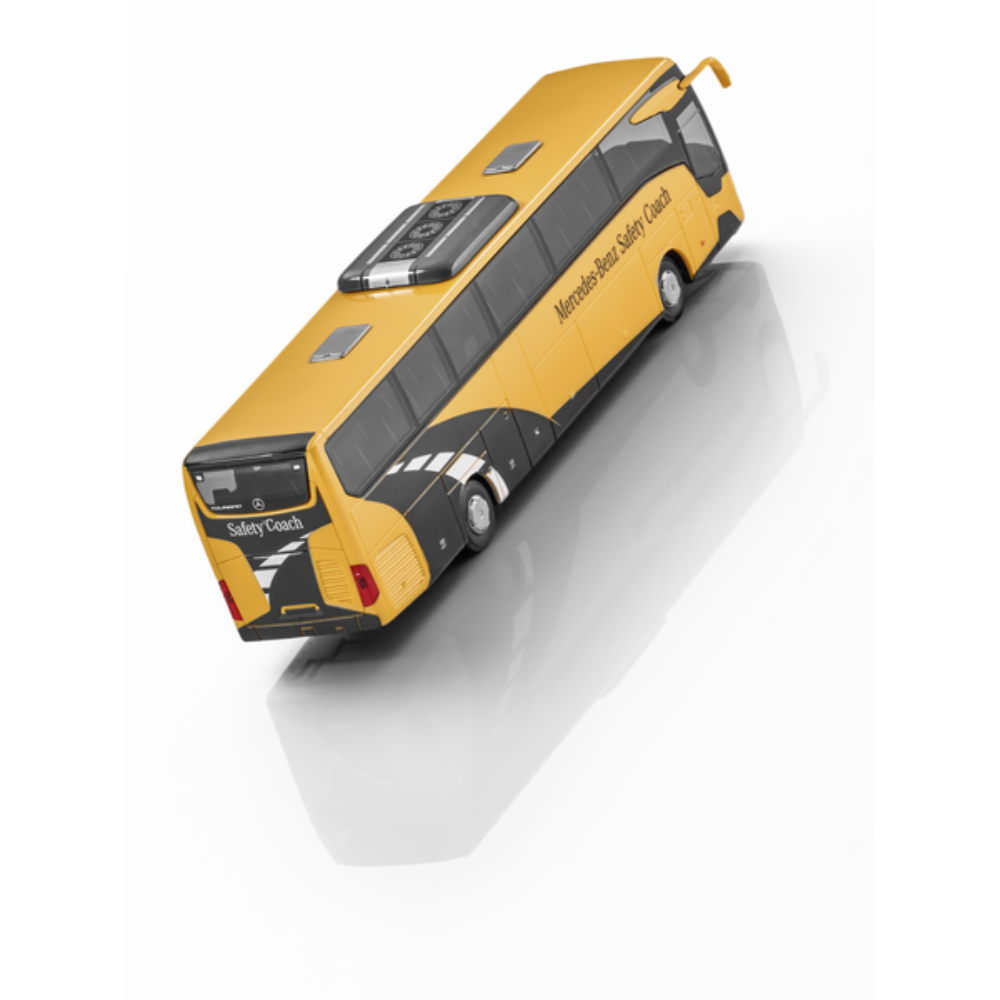 Podróżuj z maksymalnym komfortem i najwyższym poziomem bezpieczeństwa: autokar turystyczny prezentowany jako plastikowy model miniaturowy z pewnością pobudzi serca kolekcjonerów. Stworzony na podstawie oryginalnych danych CAD, ręcznie składany, precyzyjny model wykazuje najwyższą dbałość o szczegóły, w tym lakier w autentycznych kolorach i rzeczywisty nadruk Safety Coach. Wnętrze jest również niezwykle dokładne w szczegółach.