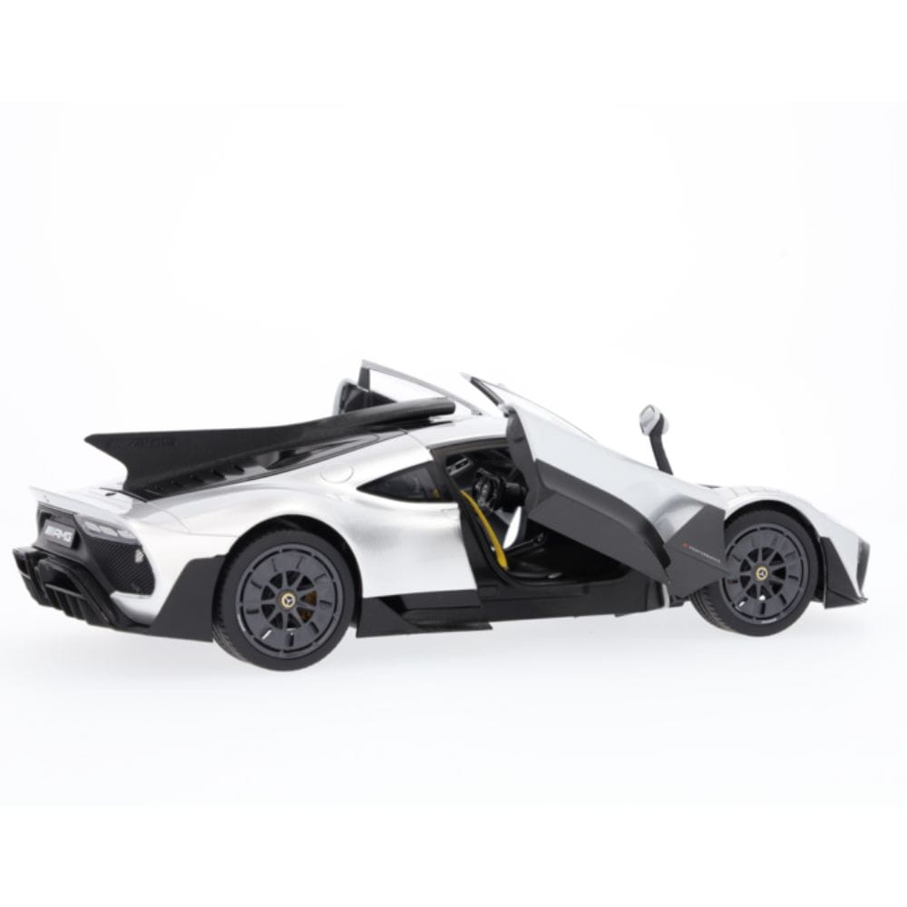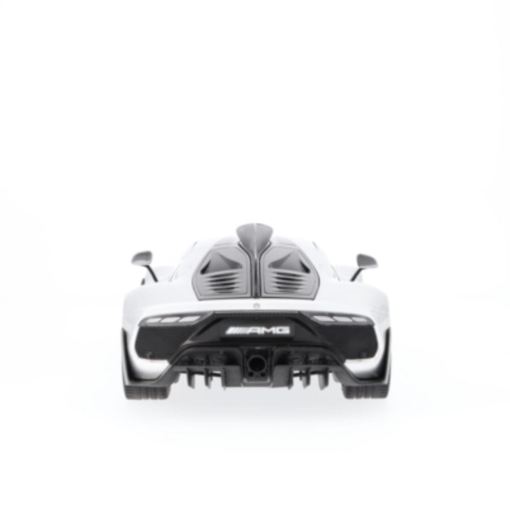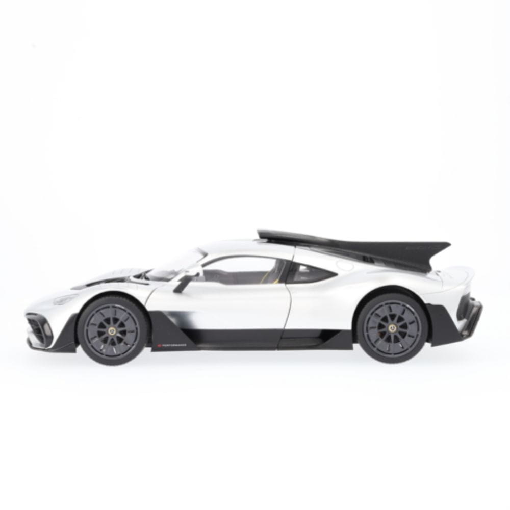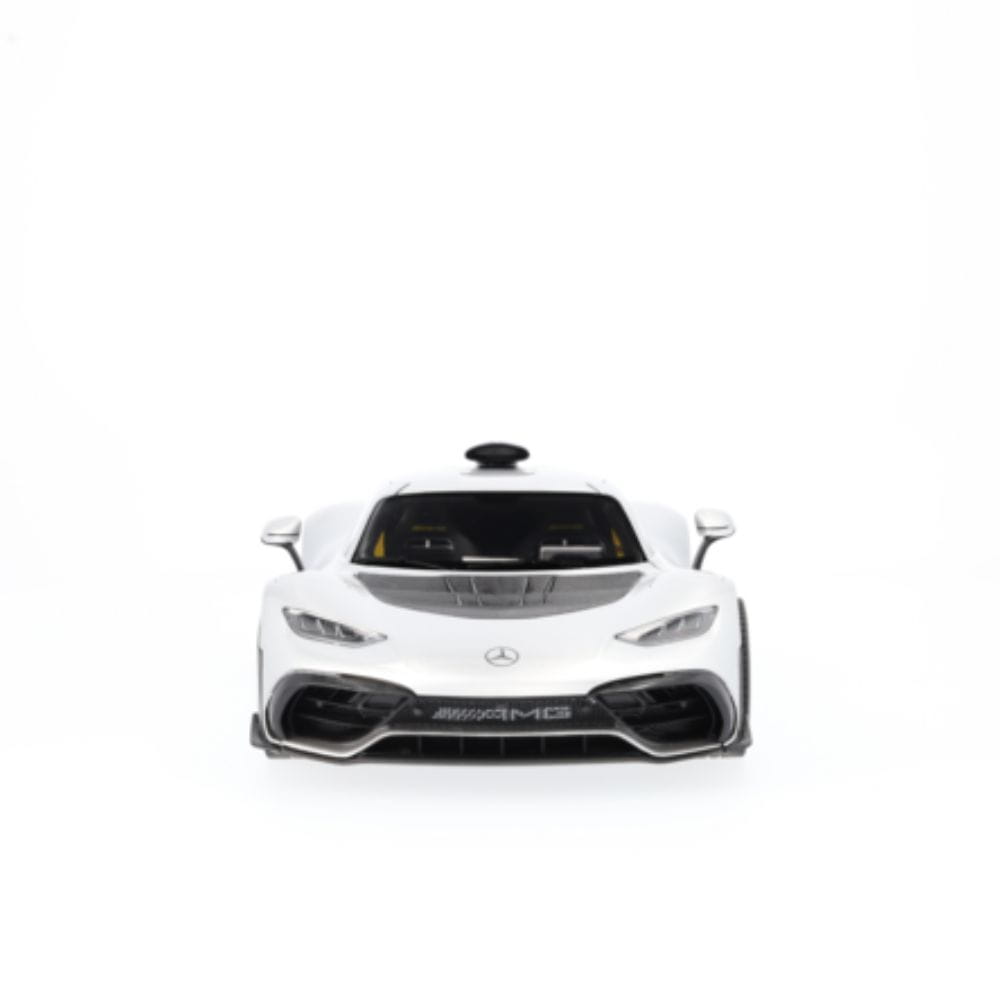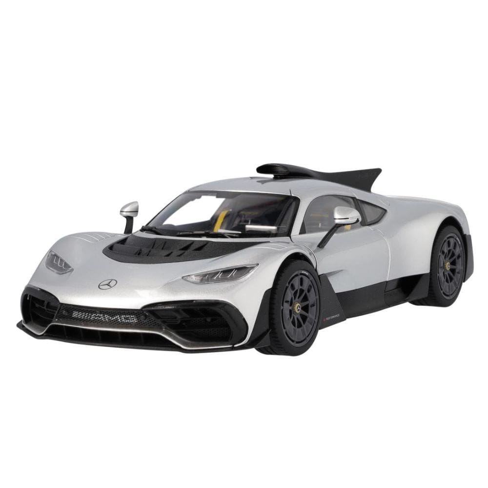 Sportowa jazda w najczystszej postaci – to właśnie oznacza Mercedes-AMG ONE. Nowoczesny samochód wyścigowy z dopuszczeniem do ruchu drogowego inspirowany jest Formułą 1 i z pewnością zachwyci niesamowitymi osiągami. Hybryda plug-in E PERFORMANCE z klasy premium może pochwalić się turbodoładowanym silnikiem benzynowym V6 o pojemności 1,6 litra i czterema silnikami elektrycznymi obsługującymi turbosprężarkę, wał korbowy i przednią oś, co łącznie daje jej systemową moc 1063 KM. Niepowtarzalna moc i wyjątkowe właściwości jezdne: dzięki modelowi samochodu Mercedes-AMG ONE C298 legenda może teraz stać się częścią Twojej domowej kolekcji. Stworzony przy użyciu oryginalnych danych CAD z maksymalną dbałością o szczegóły, precyzyjny model jest nie tylko wykończony w autentycznym kolorze lakieru, ale także dokładnie odwzorowuje szczegóły wnętrza. Drzwi kierowcy i drzwi pasażera z przodu można otworzyć, co pozwala na bliższą inspekcję wnętrza samochodu. Jako model wersji ulicznej samochód ma zamknięte pętle na błotnikach. Spoiler również jest schowany. Model samochodu jest dostarczany w opakowaniu Mercedes-AMG i zawiera śrubokręt oraz rękawicę.