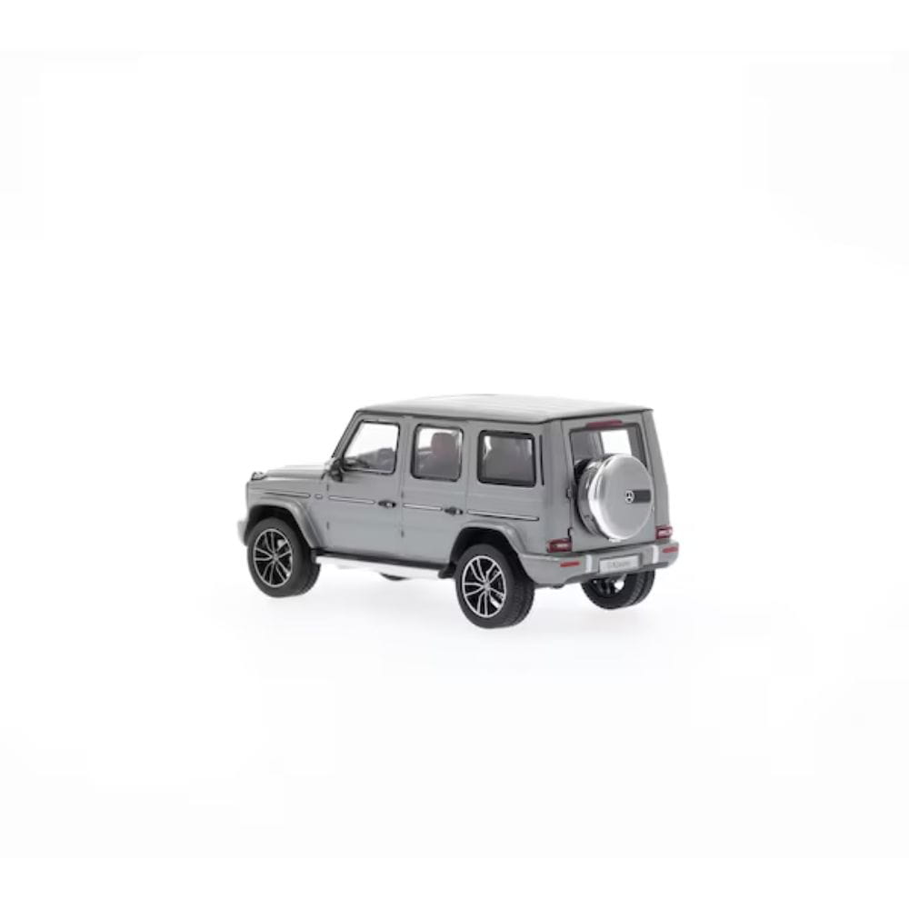 Klasa G – kultowy pojazd terenowy, który łączy w sobie maksymalny komfort, przewagę bez wysiłku i wyjątkowe funkcje, niezależnie od terenu. Dzięki W465, nowej edycji samochodu terenowego, historia sukcesu trwa nadal i można ją również doświadczyć w postaci ręcznie złożonego, precyzyjnego modelu klasycznego pojazdu. Niezależnie od tego, czy chodzi o nadwozie i wnętrze linii AMG, pakiet Night, chromowany pierścień koła zapasowego, 20-calowe obręcze kół AMG ze stopów lekkich z 5 podwójnymi ramionami, czy też o wnętrze, w którym imponująca jakość i pełen charakteru język designu idą w parze ręka w rękę: w replice Mercedes-Benz Klasy G przemyślano każdy szczegół, nawet najmniejszy. Miniaturowy model jest montowany na drukowanej podstawie, w pudełku prezentacyjnym i dostarczany w opakowaniu z wzorem.