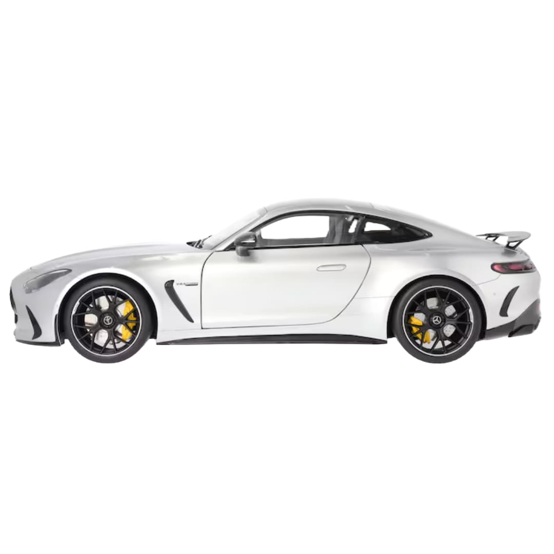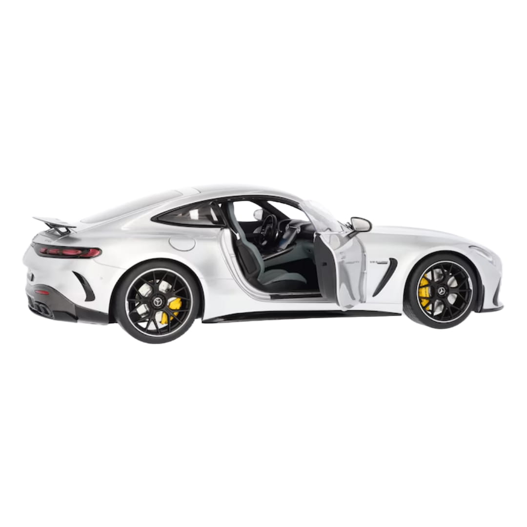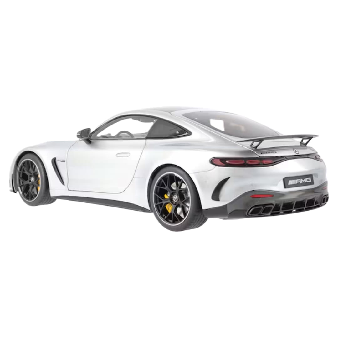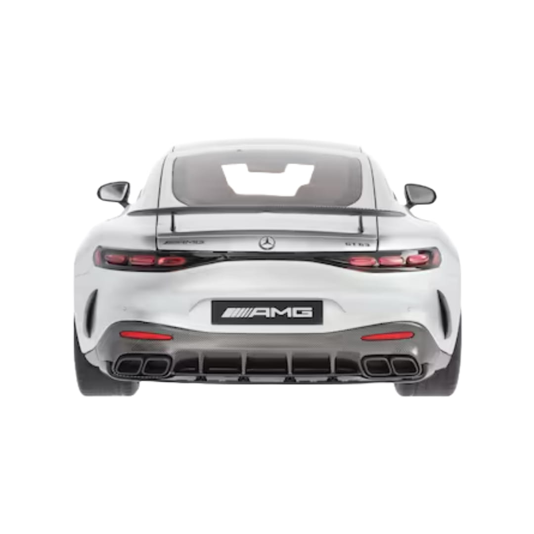 Pakiet aerodynamiczny AMG, panoramiczny dach, fotele AMG Performance, pakiet nadwozia AMG Carbon, pakiet Night AMG i kute obręcze AMG o średnicy 53,3 cm (21 cali) z krzyżowymi ramionami - w miniaturowym modelu Mercedes-AMG GT 63 4MATIC+ Coupé z pakietem aerodynamicznym C192 nic nie jest przypadkowe. Nie bez powodu precyzyjny model został wykonany zgodnie z oryginalnymi danymi CAD, polakierowany na autentyczny kolor i ręcznie zmontowany z ponad 215 pojedynczych części. Wszystkie detale bogato wyposażonego wnętrza również zostały odwzorowane zgodnie z oryginałem, włącznie z flokowaną podłogą. Dodatkową atrakcją modelu w skali 1:12 są otwierane drzwi, pokrywa komory silnika i pokrywa bagażnika. Miniaturowy model jest dostarczany w opakowaniu Mercedes-AMG wraz z wkrętakiem i rękawiczką. Umożliwia to wyjęcie coupé z opakowania i podziwianie go bez pozostawiania odcisków palców.