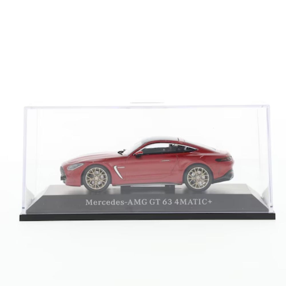 Panoramiczny dach, fotele AMG Performance i kute obręcze AMG o średnicy 53,3 cm (21 cali) z krzyżowymi ramionami - miniaturowy model Mercedes-AMG GT 63 4MATIC+ Coupé C192 został wykonany na najwyższym poziomie szczegółowości zgodnie z oryginalnymi danymi CAD i jest w całości oparty na swoim wielkim wzorcu, aby sprostać wymaganiom każdego kolekcjonera. Precyzyjny model, ręcznie składany z ponad 45 pojedynczych części, jest polakierowany na autentyczny kolor i wiernie odwzorowuje wszystkie detale bogato wyposażonego wnętrza. Miniaturowy model z ciśnieniowego odlewu cynku i elementami z tworzywa jest zamontowany na zadrukowanej podstawie i otoczony pudełkiem prezentacyjnym, zapewniającym dobrą ekspozycję.
