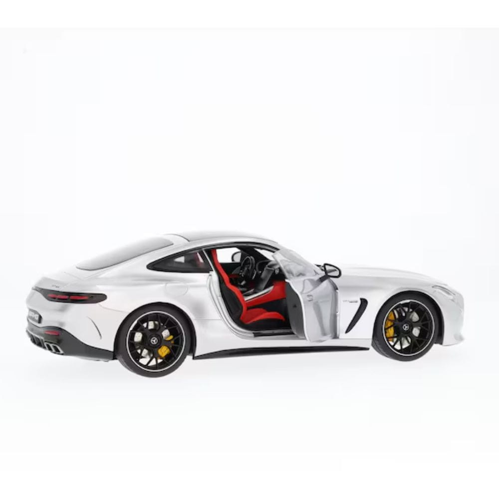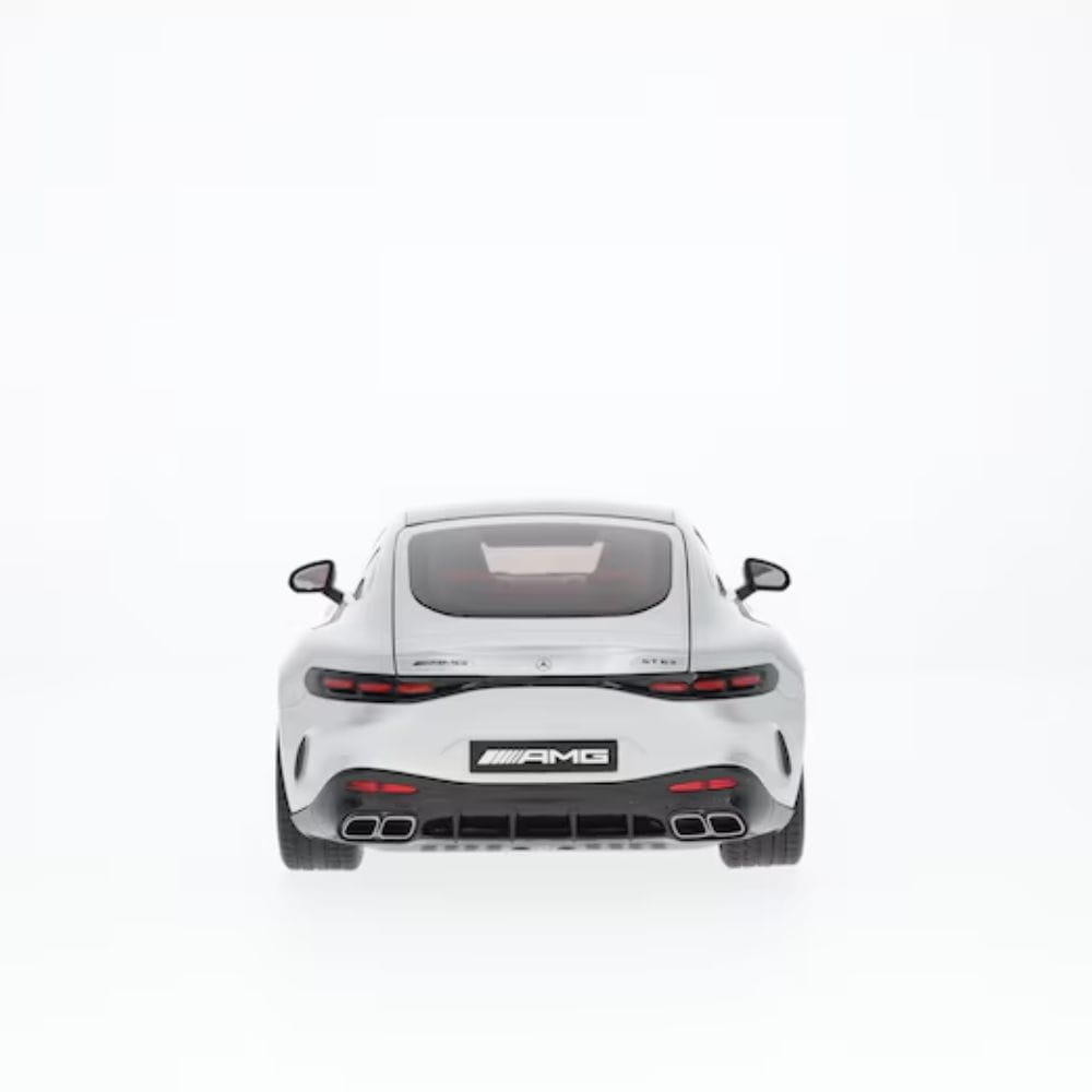 Od panoramicznego dachu, przez fotele AMG Performance po kute koła AMG o średnicy 53,3 cm (21 cali) z krzyżowymi ramionami – miniaturowy model Mercedes-AMG GT 63 4MATIC+ Coupé C192 został stworzony przy użyciu danych CAD oryginału dla maksymalną dbałość o szczegóły i doskonale uzupełnia każdą kolekcję. Na przykład miniaturowy model z odlewanego ciśnieniowo cynku z częściami z tworzywa sztucznego składa się z ponad 174 pojedynczych części, które są precyzyjnie składane ręcznie. Wyjątkowa atrakcja: cztery części modelu w skali 1:18 – drzwi, maska i tylna klapa – można otwierać. Nie ulega wątpliwości, że wierne odwzorowanie wszystkich szczegółów wnętrza w wysokiej jakości wnętrzu z flokowaną podłogą i podłogą bagażnika sprawia, że serca kolekcjonerów biją szybciej, podobnie jak lakier w autentycznym odcieniu koloru. Precyzyjny model jest dostępny w opakowaniu Mercedes-AMG. W zestawie śrubokręt i rękawiczka ułatwiające wyciągnięcie modelu z opakowania i zabezpieczenie go podczas wyjmowania tak, aby na szybie i pomalowanym korpusie nie pozostały odciski palców.