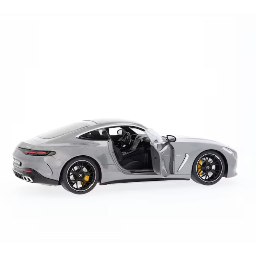 Od panoramicznego dachu, przez fotele AMG Performance po koła AMG o średnicy 53,3 cm (21 cali) z krzyżowymi ramionami – miniaturowy model Mercedes-AMG GT 63 4MATIC+ Coupé C192 został stworzony przy użyciu danych CAD oryginału dla maksymalną dbałość o szczegóły i doskonale uzupełnia każdą kolekcję. Na przykład miniaturowy model z odlewanego ciśnieniowo cynku z częściami z tworzywa sztucznego składa się z ponad 174 pojedynczych części, które są precyzyjnie składane ręcznie. Wyjątkowa atrakcja: cztery części modelu w skali 1:18 – drzwi, maska i tylna klapa – można otwierać. Nie ulega wątpliwości, że wierne odwzorowanie wszystkich szczegółów wnętrza w wysokiej jakości wnętrzu z flokowaną podłogą i podłogą bagażnika sprawia, że serca kolekcjonerów biją szybciej, podobnie jak lakier w autentycznym odcieniu koloru. Precyzyjny model jest dostępny w opakowaniu Mercedes-AMG. W zestawie śrubokręt i rękawiczka ułatwiające wyciągnięcie modelu z opakowania i zabezpieczenie go podczas wyjmowania tak, aby na szybie i pomalowanym korpusie nie pozostały odciski palców.