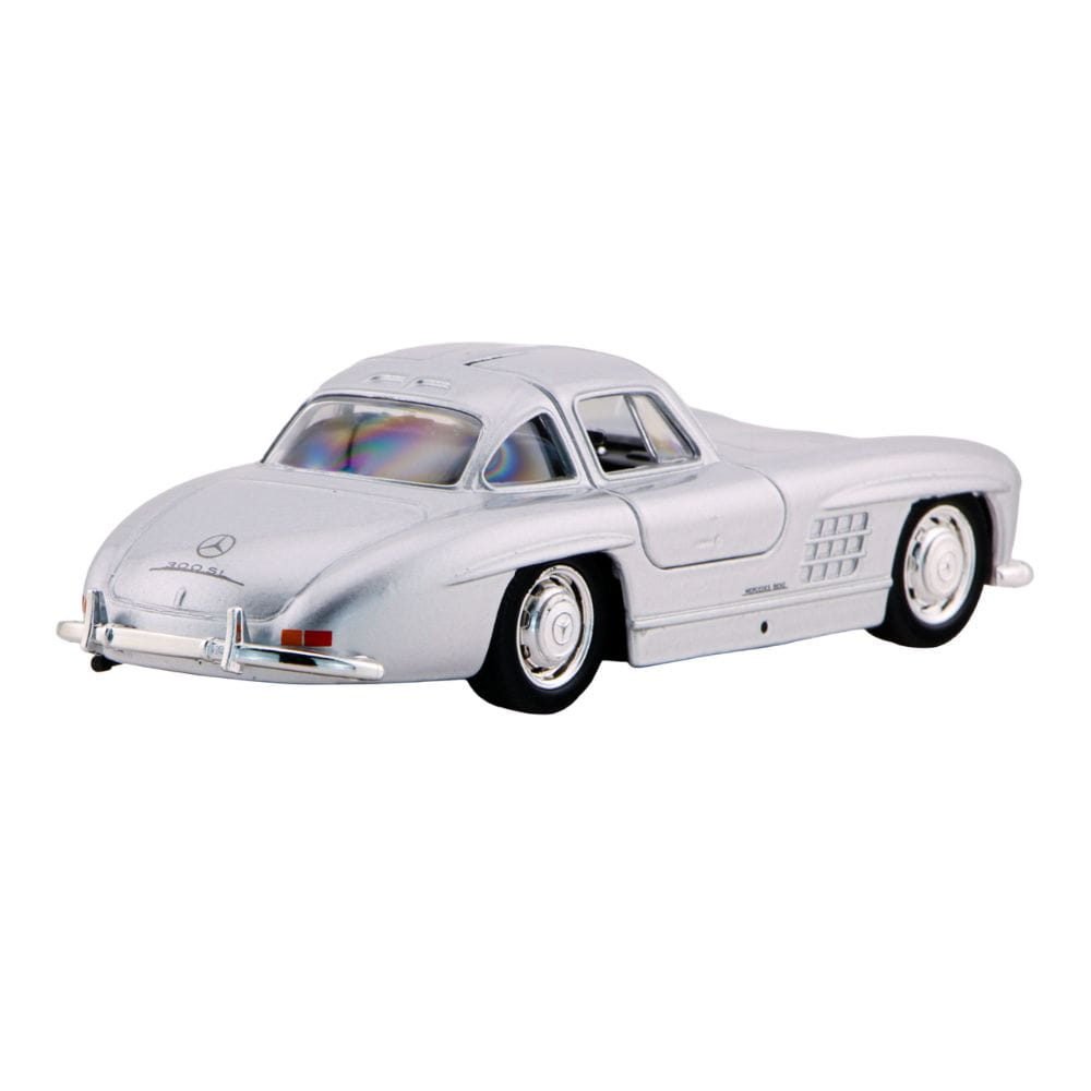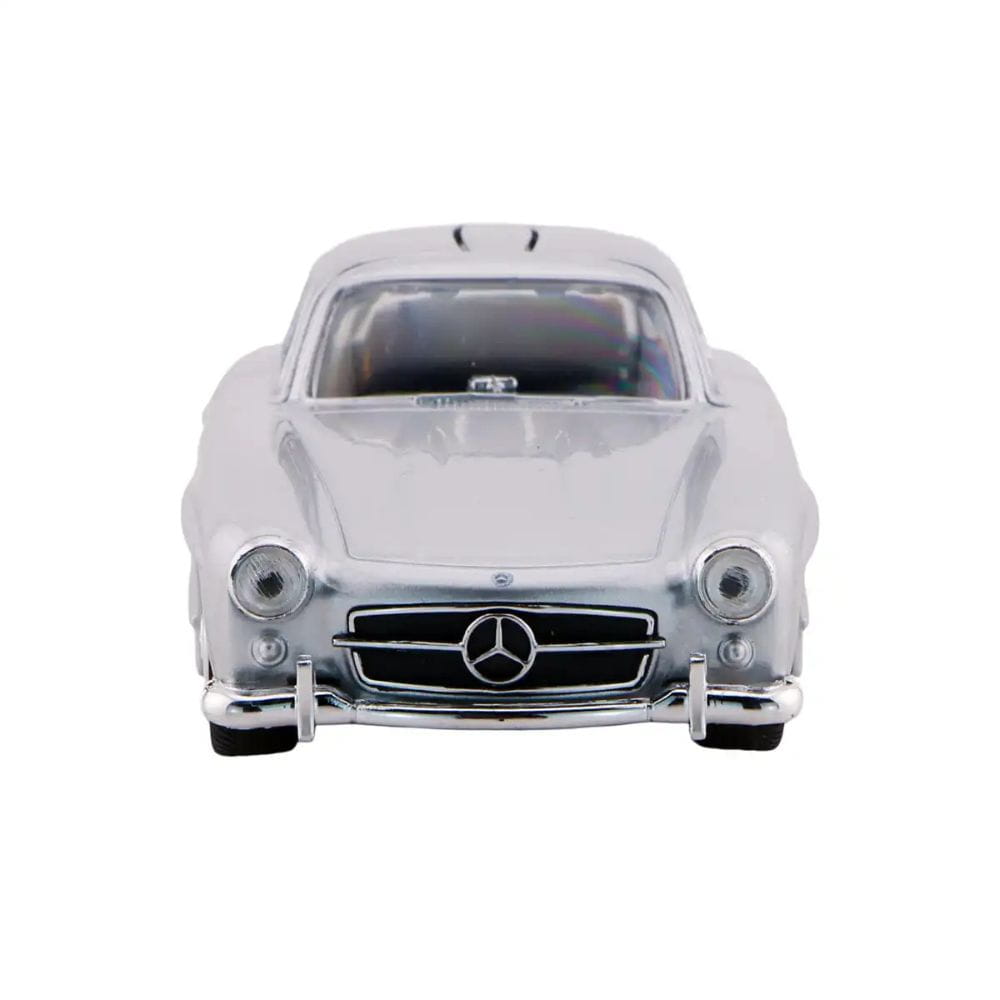 Modelik Mercedes-Benz 300 SL w skali 1:38 to starannie wykonana replika klasycznego samochodu sportowego. Wykonany z wysokiej jakości materiałów, odwzorowuje charakterystyczne detale nadwozia, kształt kultowych drzwi „skrzydło mewy” oraz elegancką sylwetkę oryginału.
