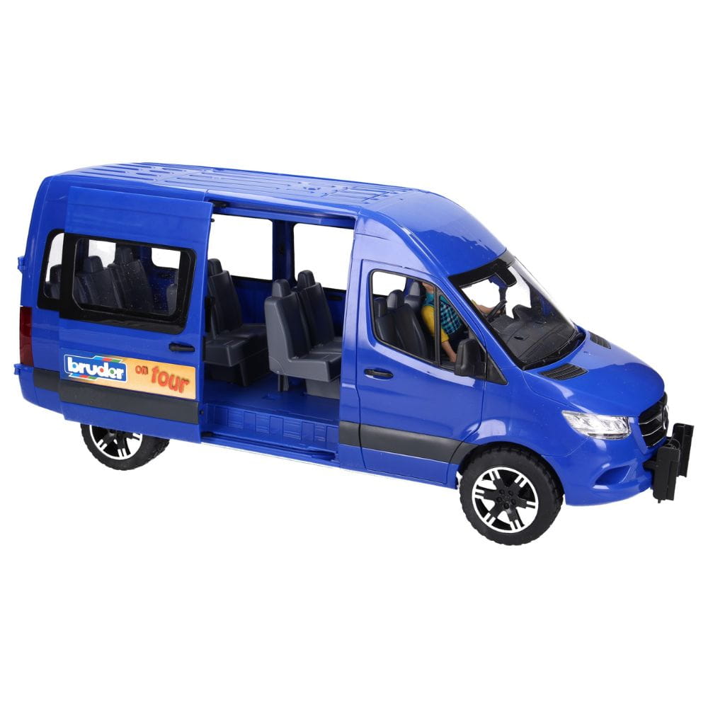 Mercedes-Benz Sprinter w wersji niebieskiego busa to uniwersalny pojazd stworzony do przewozu większej liczby pasażerów. Ten model służy jako turystyczny minibus firmy Bruder i idealnie sprawdzi się podczas wyimaginowanych wycieczek z ulubionymi figurkami z serii bWorld.